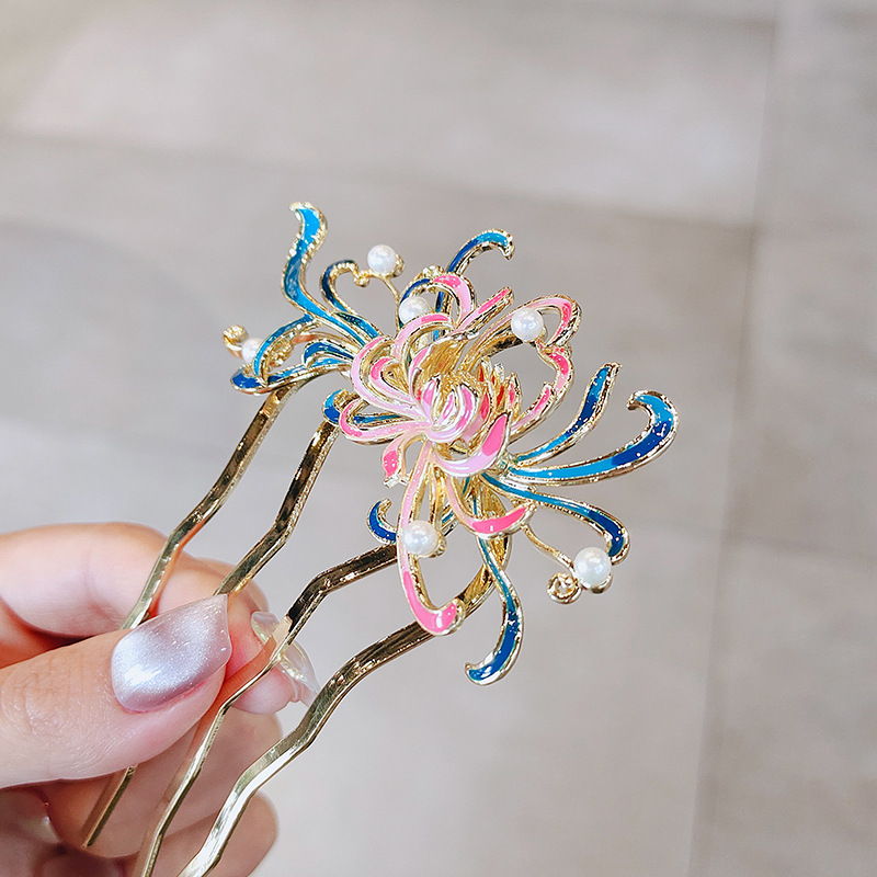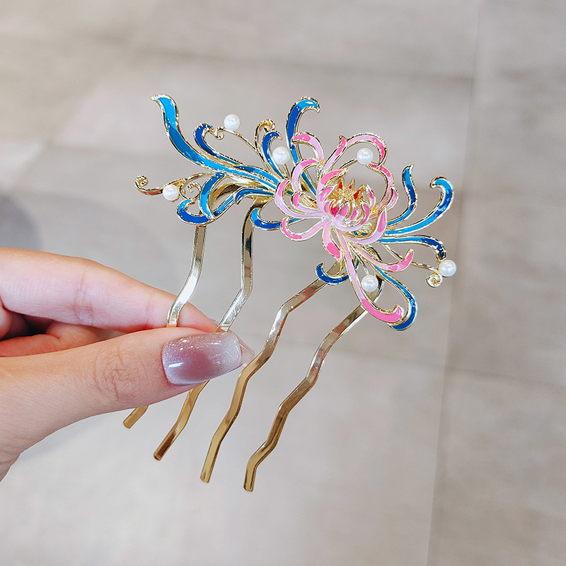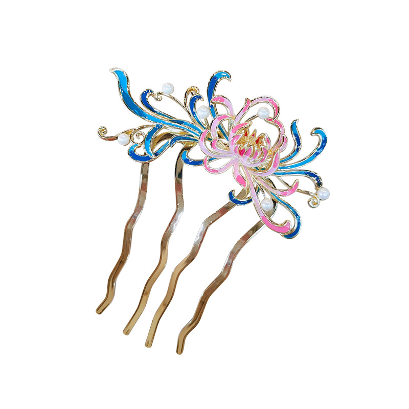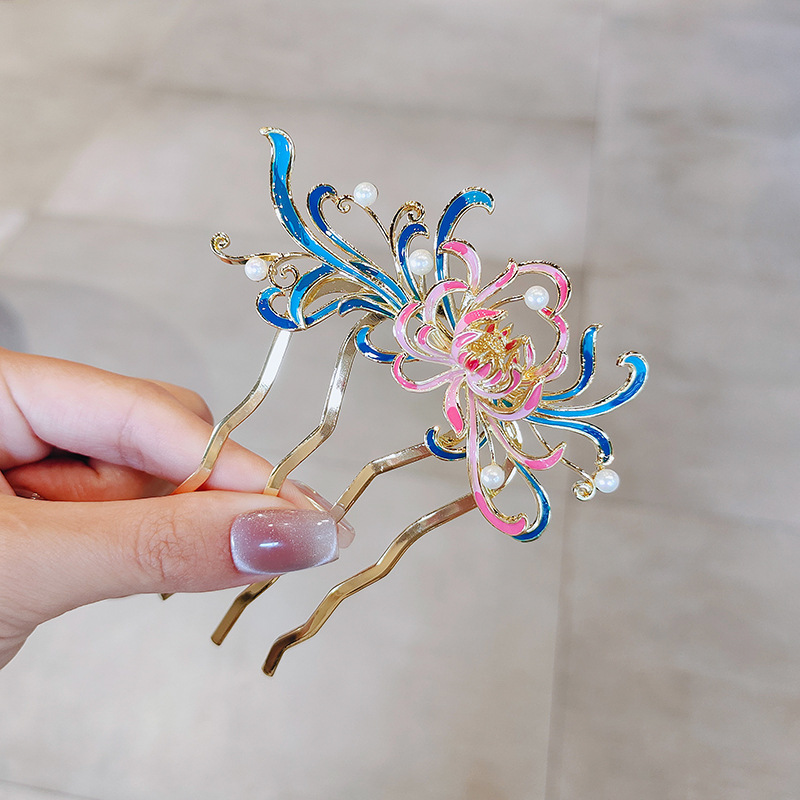 高级国风菊花型发梳水晶发饰民族发卡菊花插梳饰品小众精致插梳