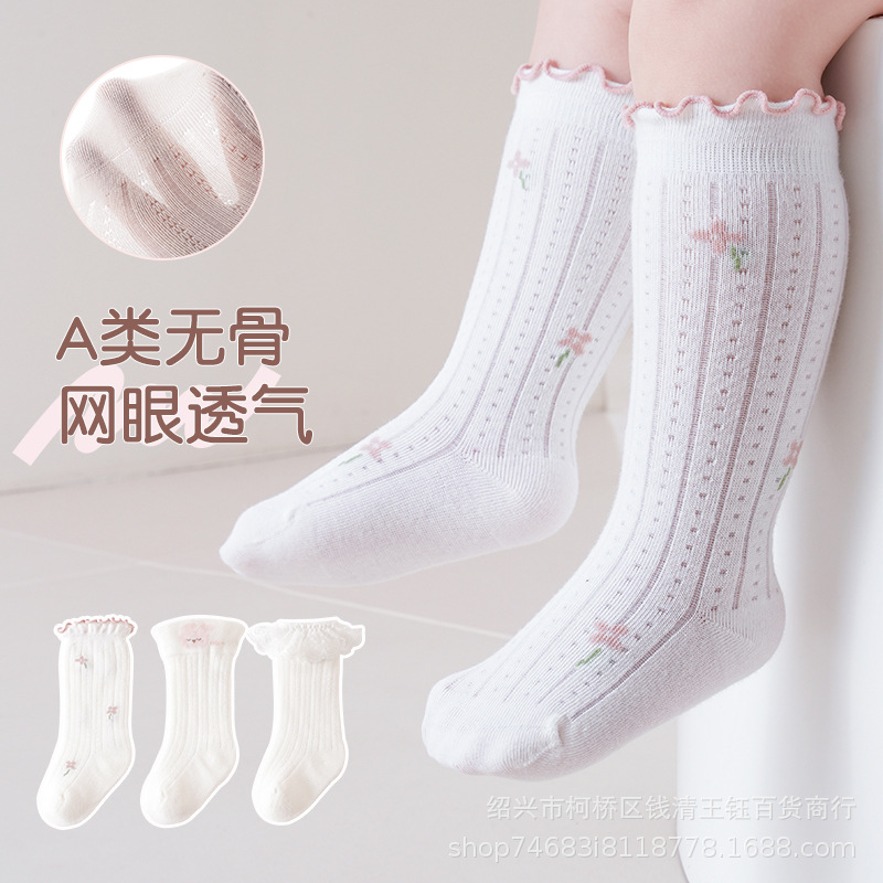 三双装宝宝长筒袜网眼透气女童花边袜 精梳棉无骨公主袜小腿袜