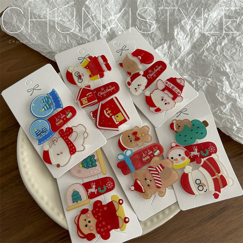 秋冬圣诞节发饰品刘海夹发卡头饰夹子韩国版可爱圣诞套装发夹老人