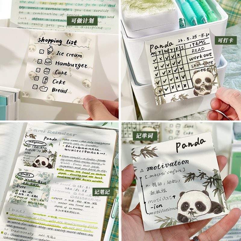 三年二班熊猫便签本可撕ins高颜值便签备忘录学生错题标签便签纸