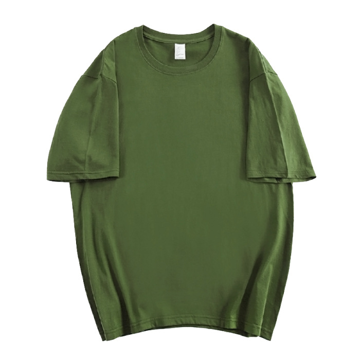A01#(200克高配紧密赛络纺100%棉)有缝后包领落肩纯棉光板短袖T