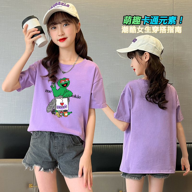 女童短袖夏装新款中大童纯棉休闲宽松T恤儿童打底衫半袖上衣潮