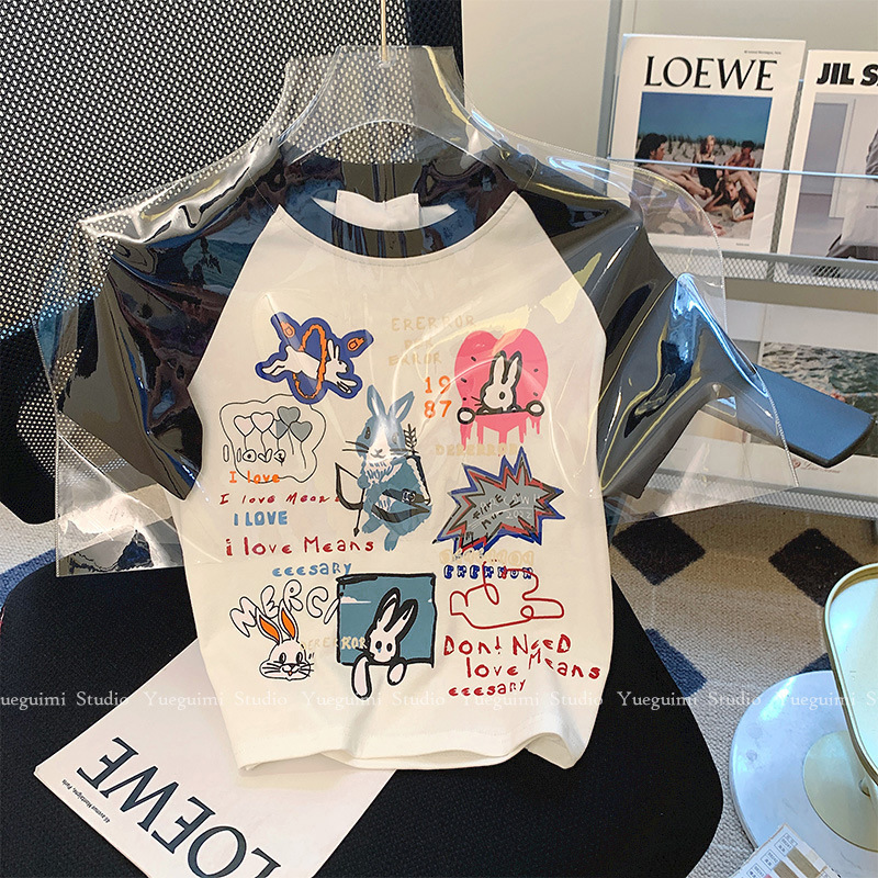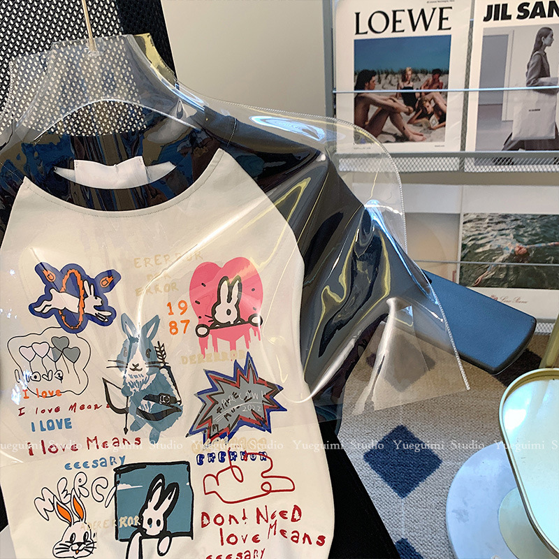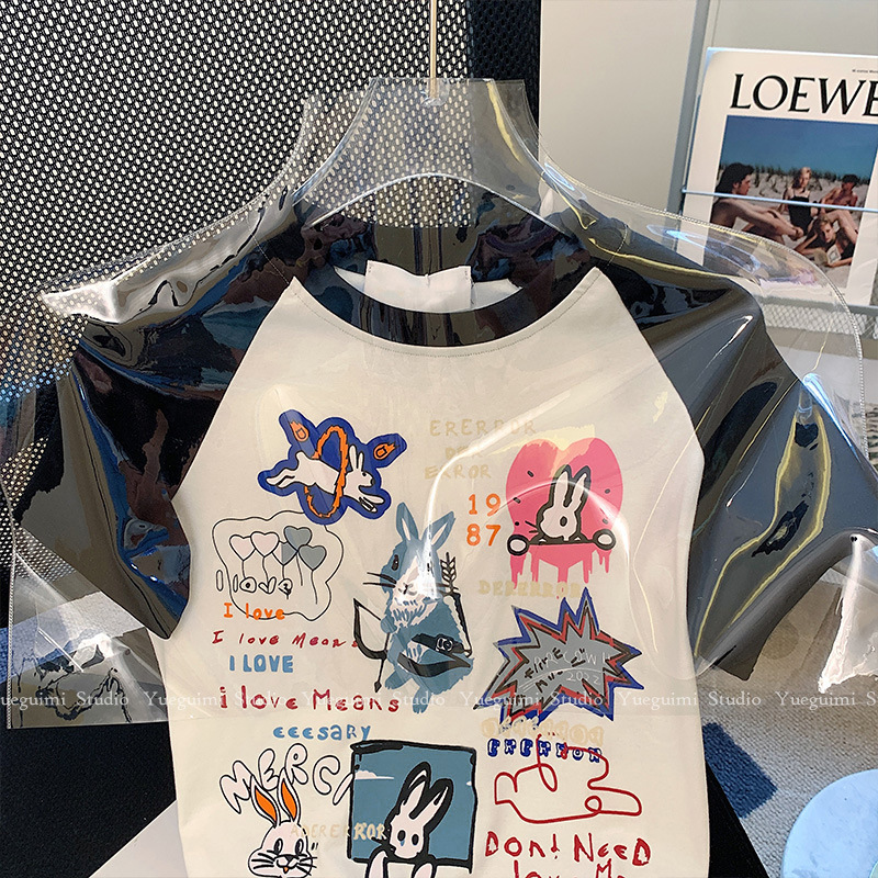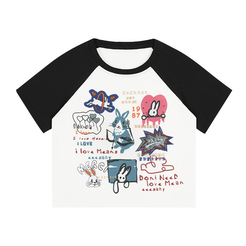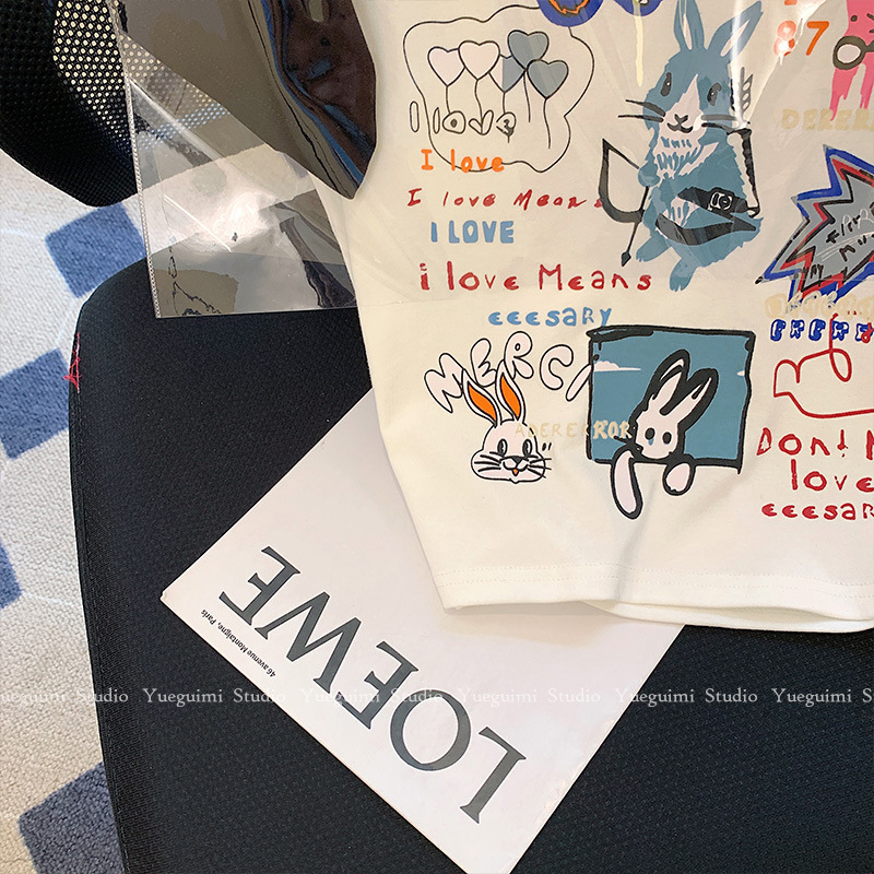 夏季日系爱心套头短袖男秋季慵懒风时尚个性印花上衣港风情侣套装