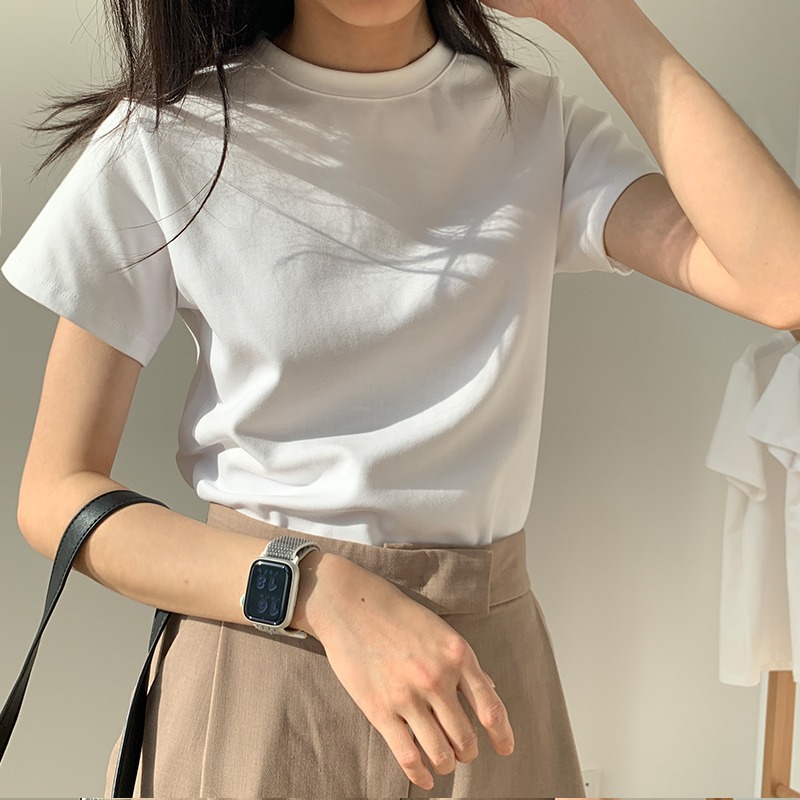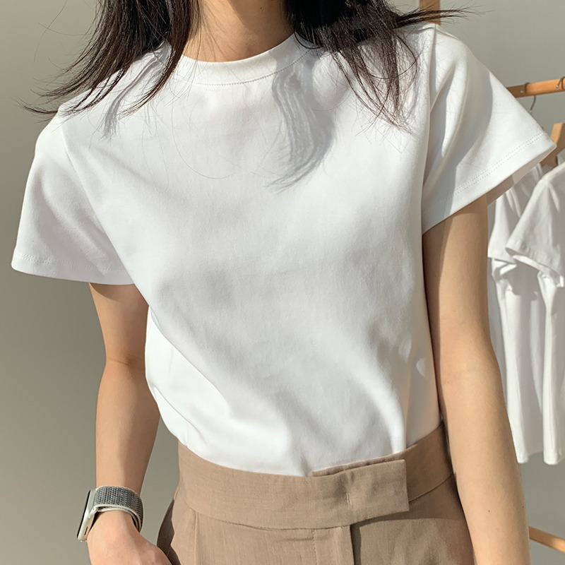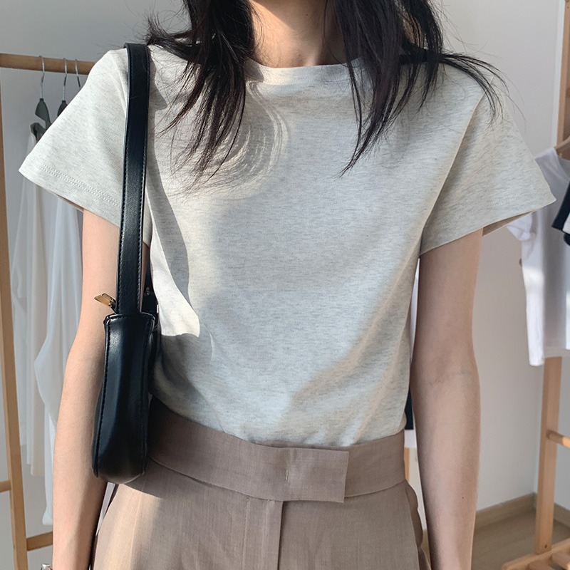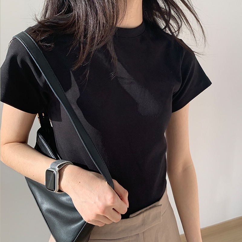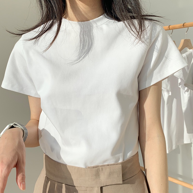 正肩短袖T恤女夏季休闲百搭上衣体桖修身显瘦基础美式款打底衫ins