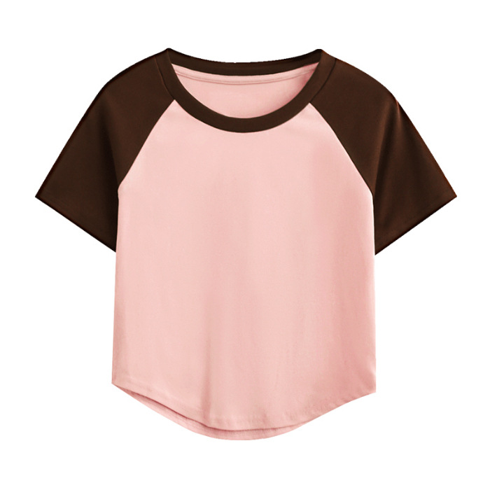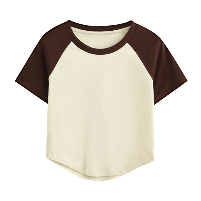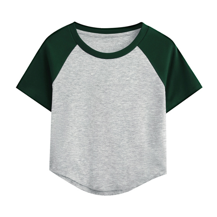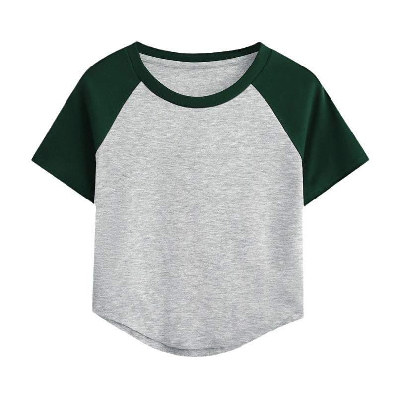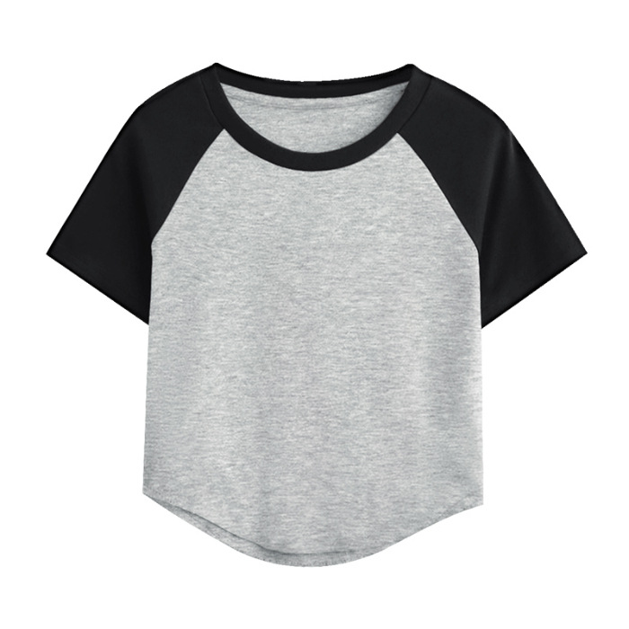 A09#( 40支奥代尔拉架)180克撞色双拼短款光版T恤跨境TEMU希音