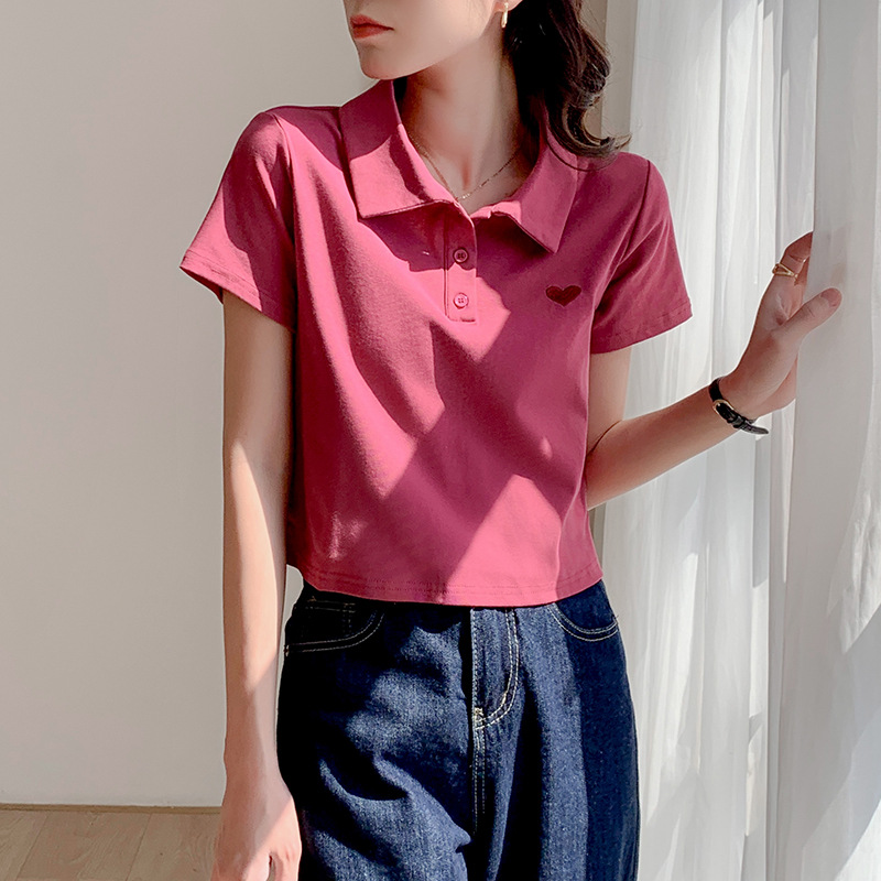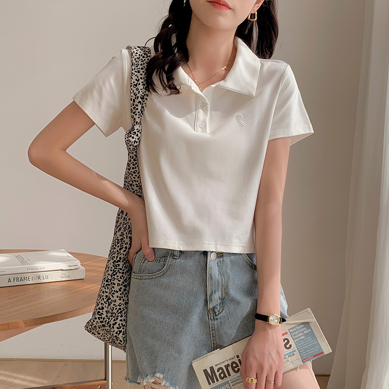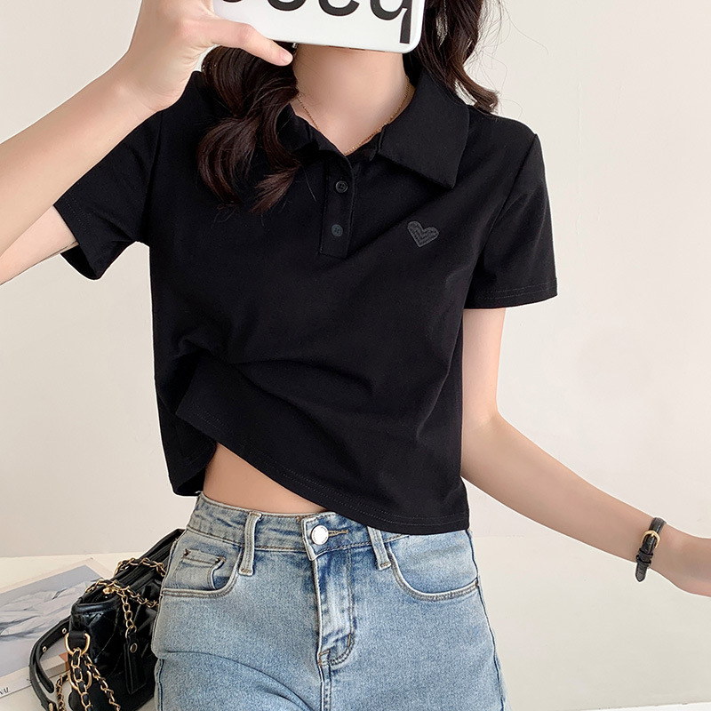 纯棉短袖T恤女宽松韩版年夏季新款高腰短款polo领小个子上衣