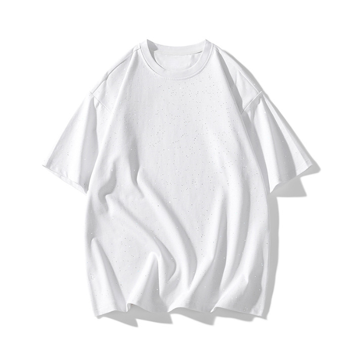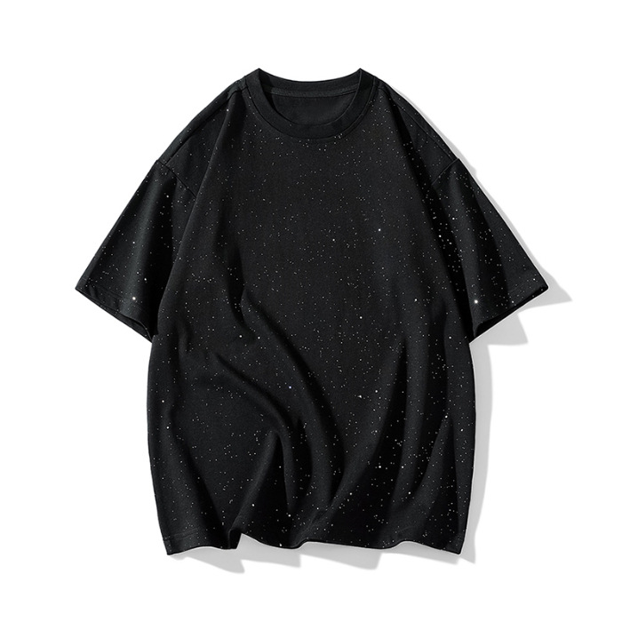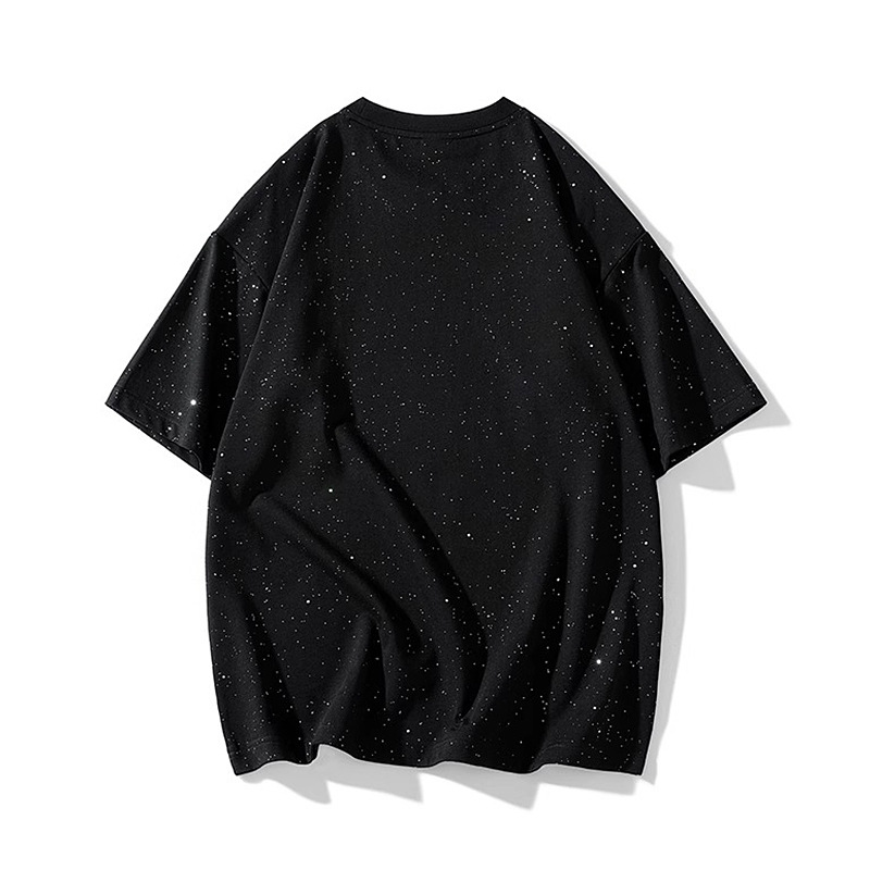 A37#(21支超爽棉220克后包领)纯棉宽松光版黑白色亮片短袖T恤