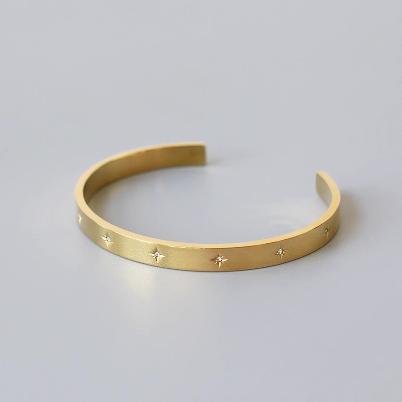 不褪色ins钛钢繁星流光异彩欧美八芒星开口手镯手环女款礼物