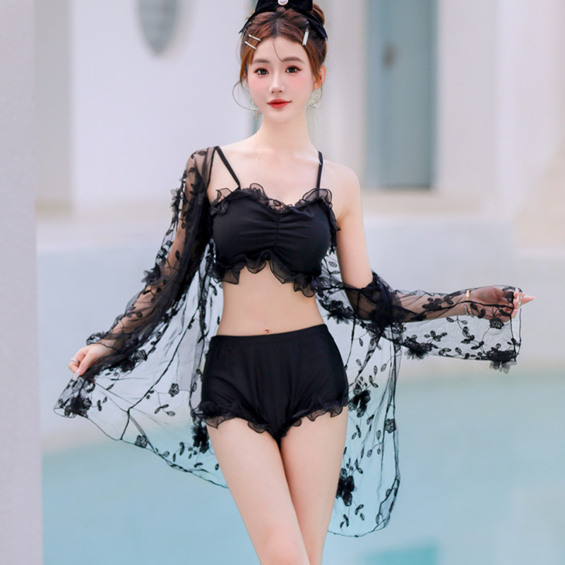 游泳衣女分体比基尼bikini性感三件套保守显瘦遮肚网红高级感泳装