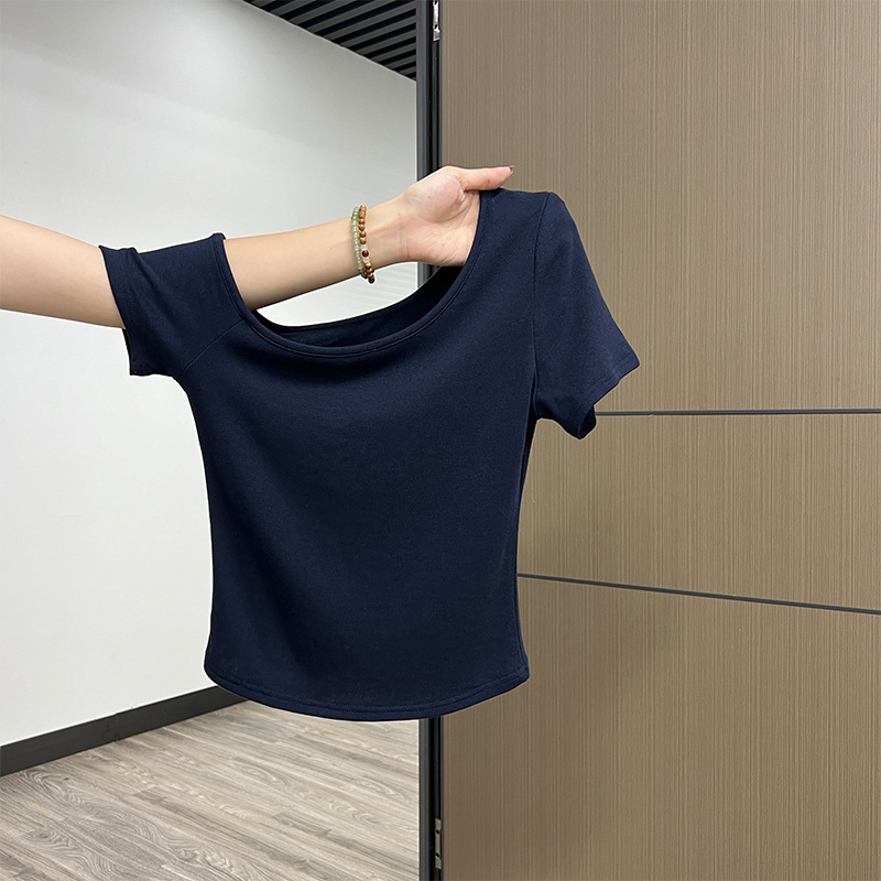 设计感不规则正肩短款短袖女夏新款韩版简约修身显瘦百搭T恤上衣