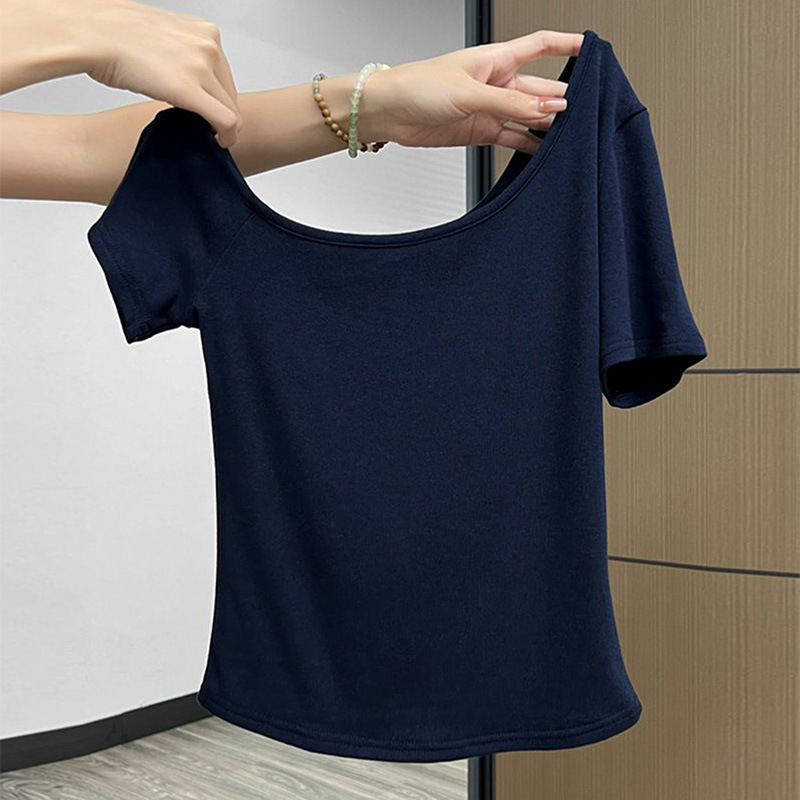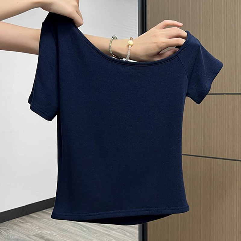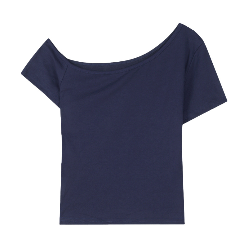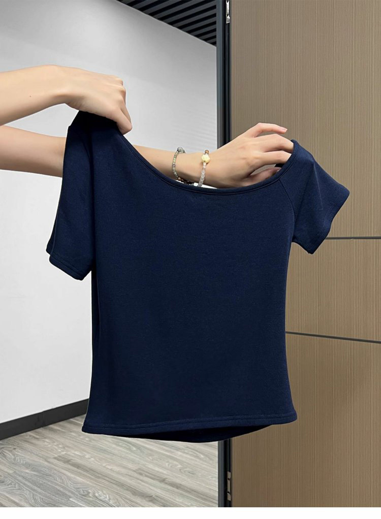 纯棉斜领露肩一字肩紧身显瘦短袖女t恤夏季甜辣妹纯欲风性感上衣