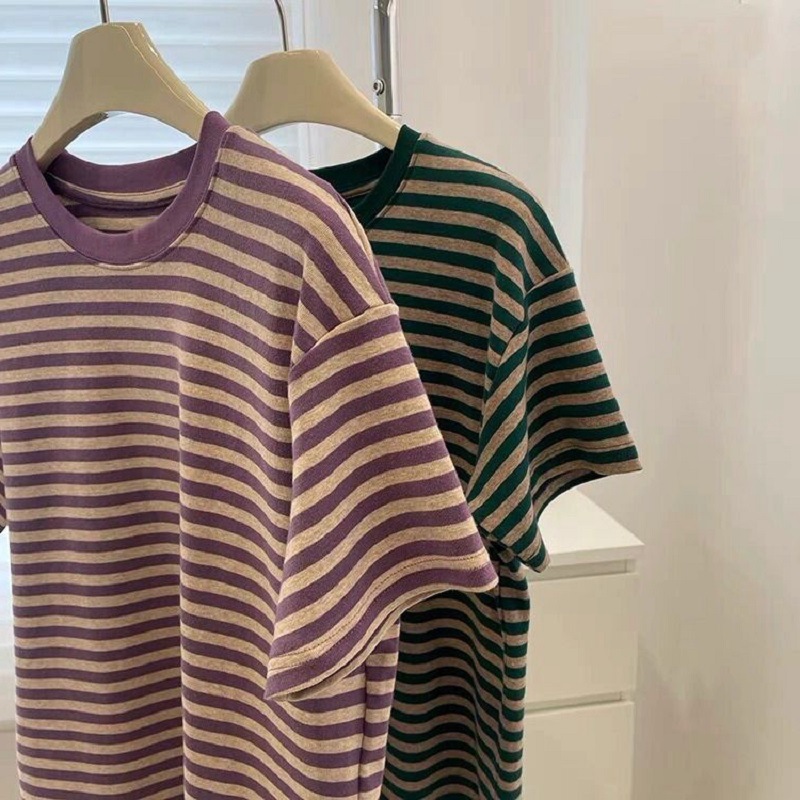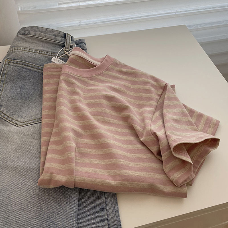 条纹短袖女夏季新款宽松正肩T恤独特设计感小众体桖半袖上衣ins潮