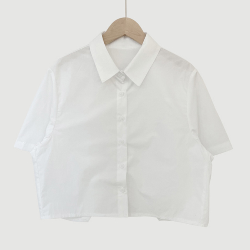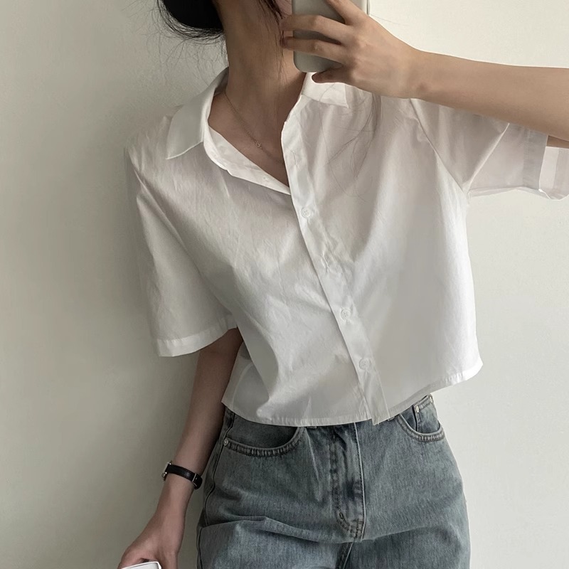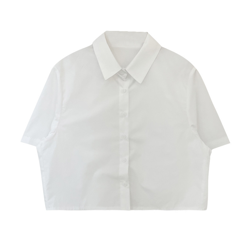 辣妹纯欲风短款衬衫女设计感小众短袖上衣百搭白色衬衣新款夏