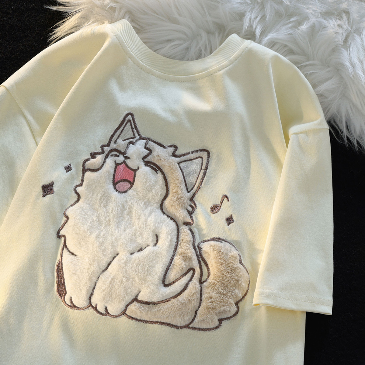 卡通联名潮牌布偶猫短袖t恤女多巴胺夏季新款情侣装甜美纯棉上衣
