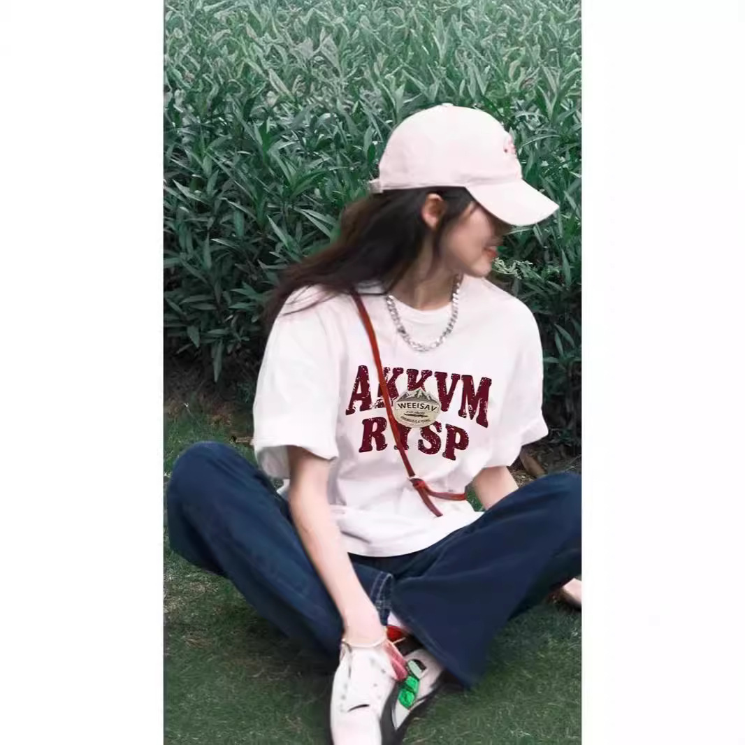 宽松印花短袖t恤女百搭夏季圆领小众设计感女装显瘦时尚