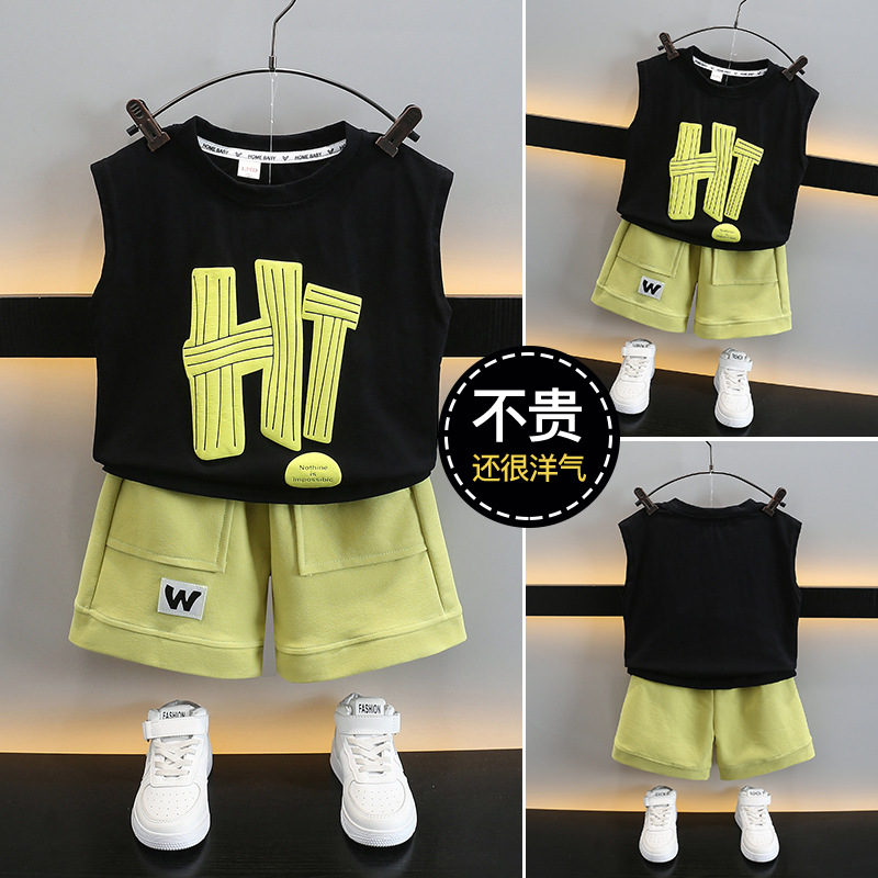 童装夏季男童运动服套装夏装中小童背心上衣五分裤时尚洋气两件套
