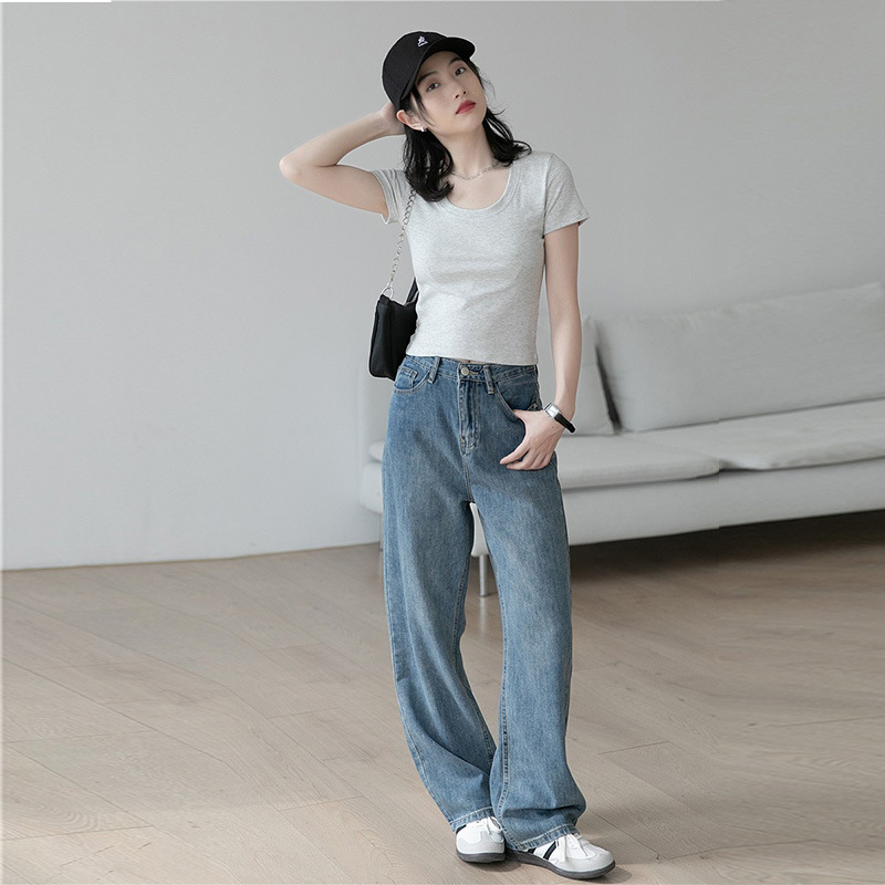 正肩纯棉短袖t恤女夏季设计感小众美式复古修身显瘦辣妹短款上衣