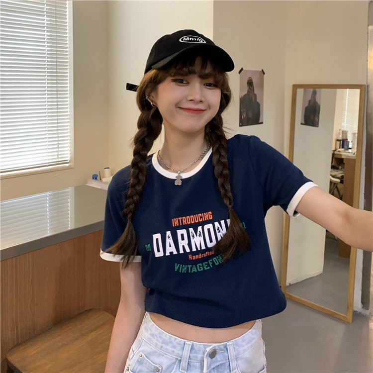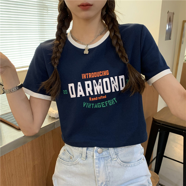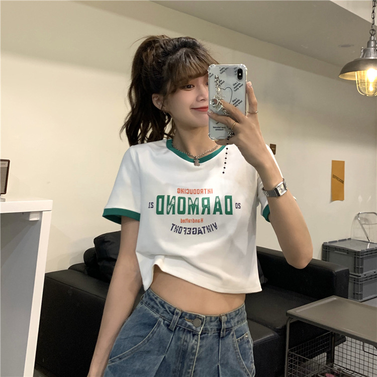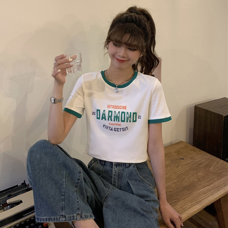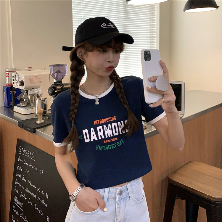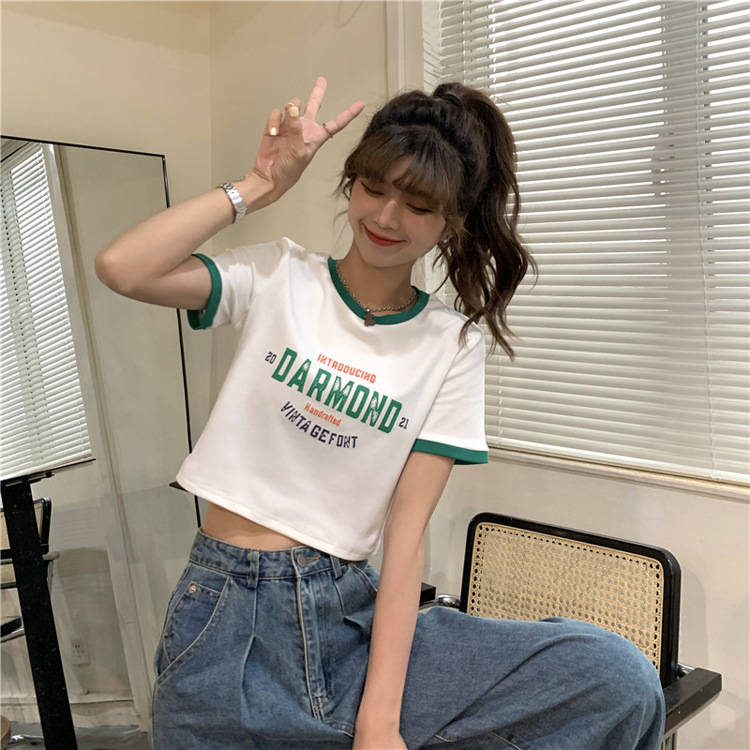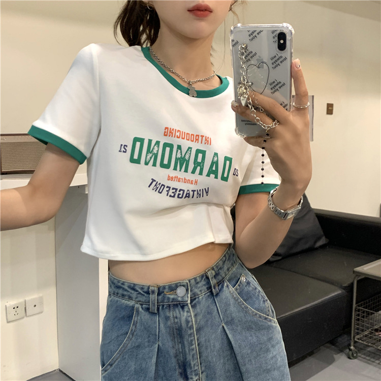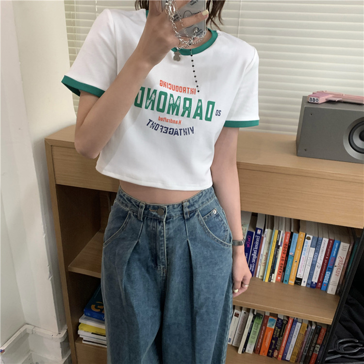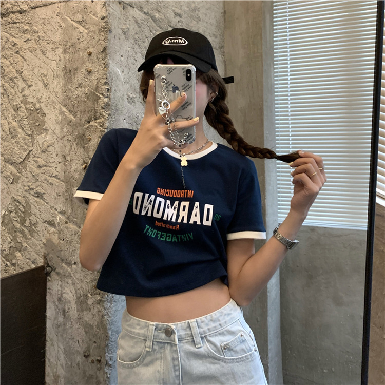 纯棉夏季短袖t恤女年新款韩版高腰显瘦半袖港风露脐短款上衣