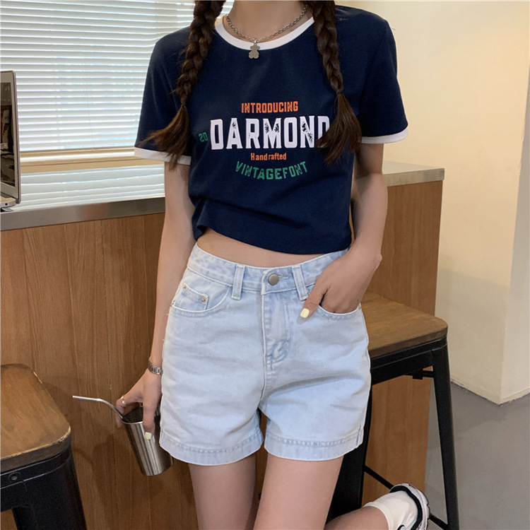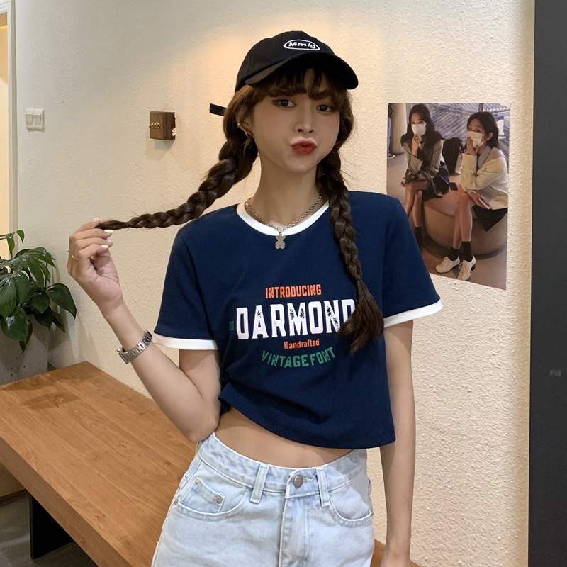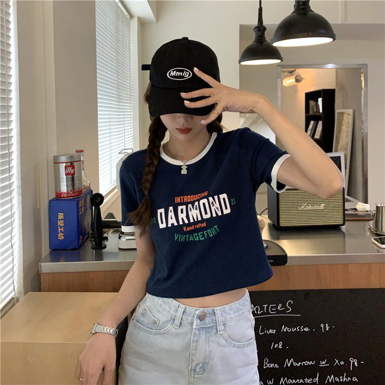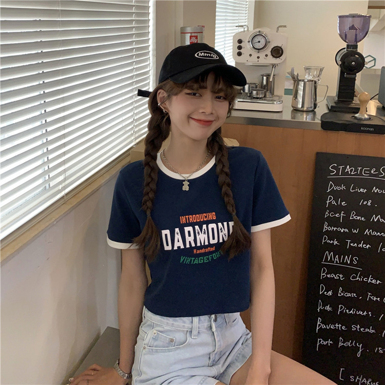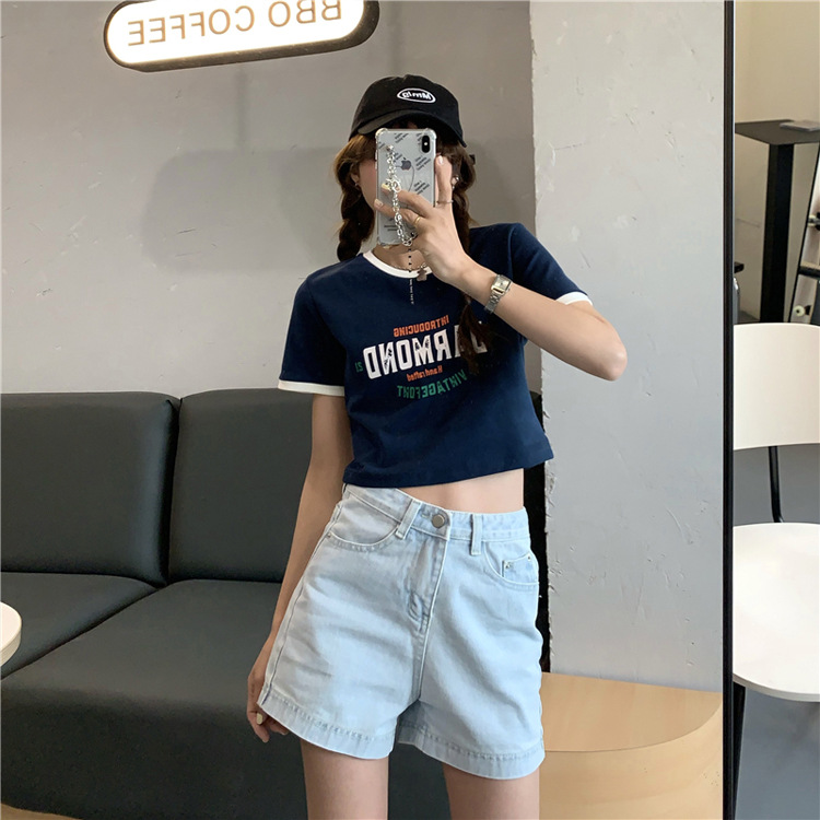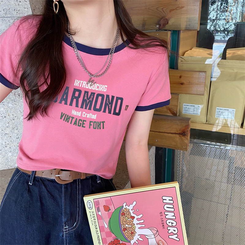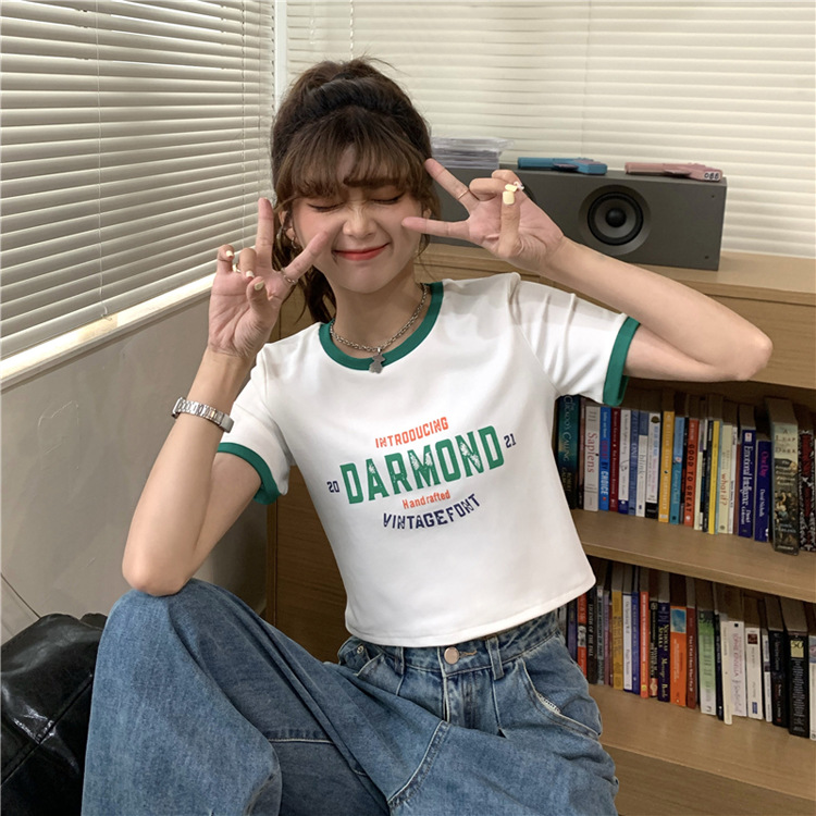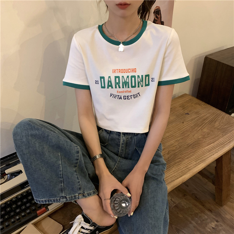 纯棉夏季短袖t恤女年新款韩版高腰显瘦半袖港风露脐短款上衣