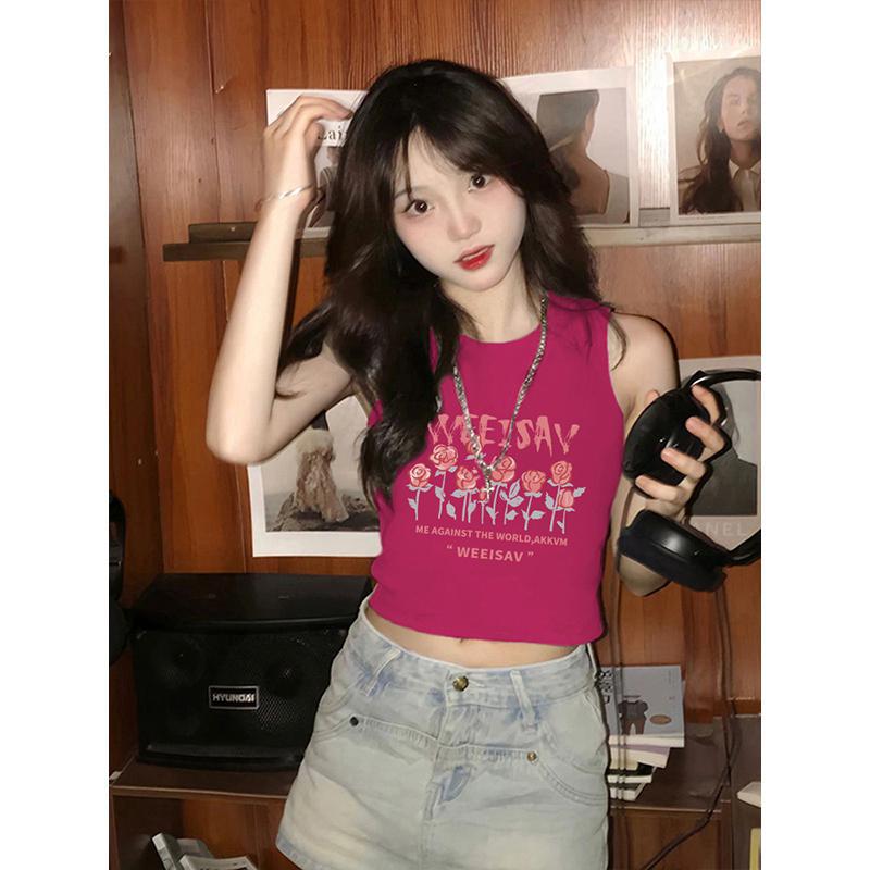 火龙果色重磅纯棉短款小吊带女夏季新款甜辣风高级感背心上衣