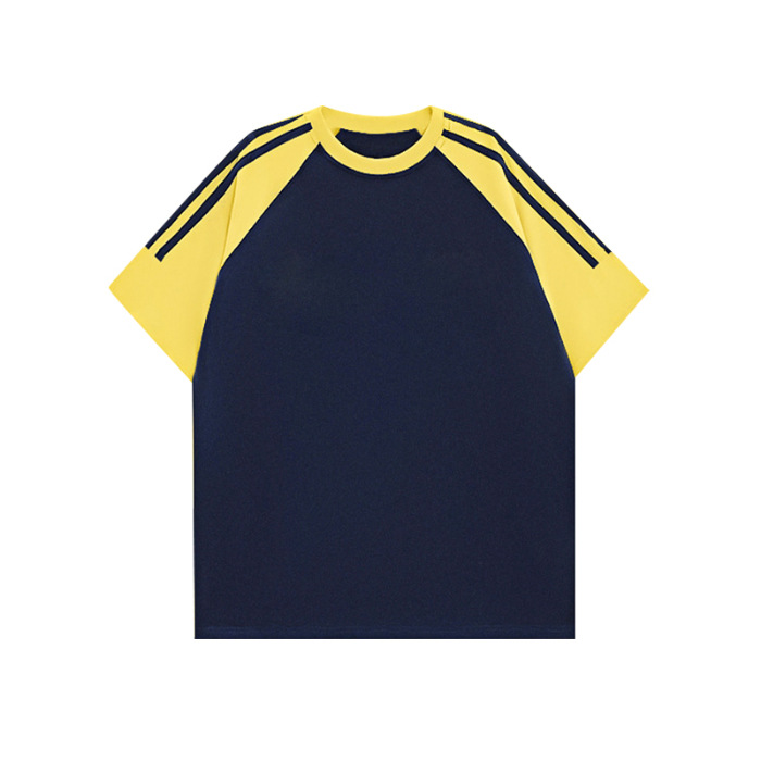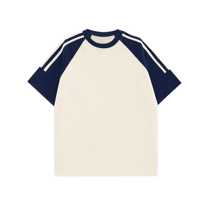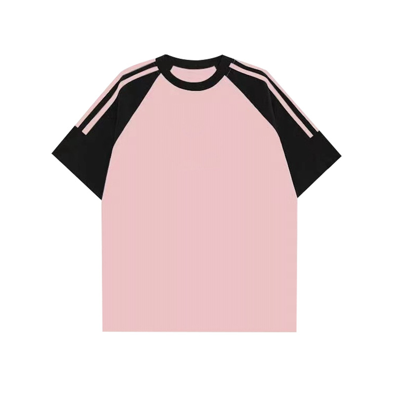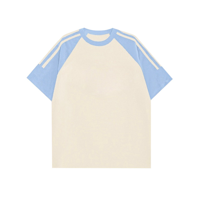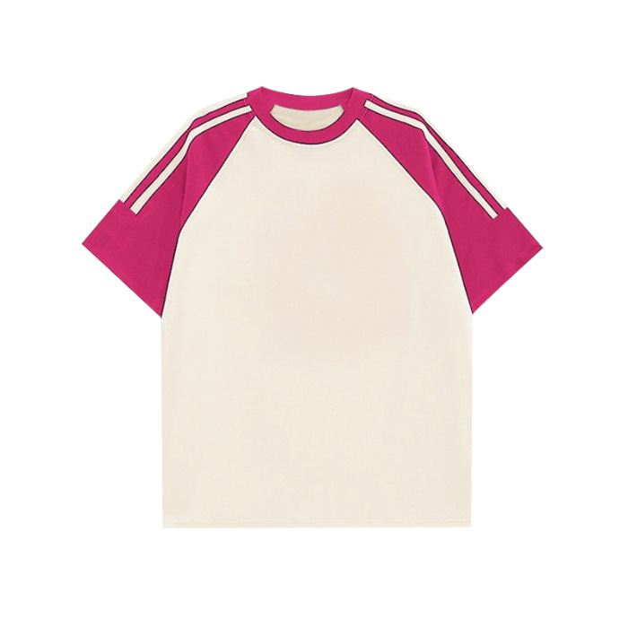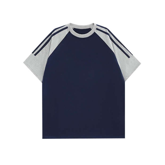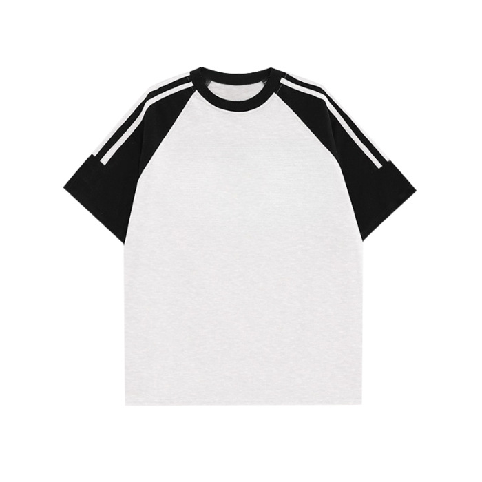 A36#(21支超爽纯棉220克索罗娜螺纹领)插肩撞色条纹三条杆短袖T