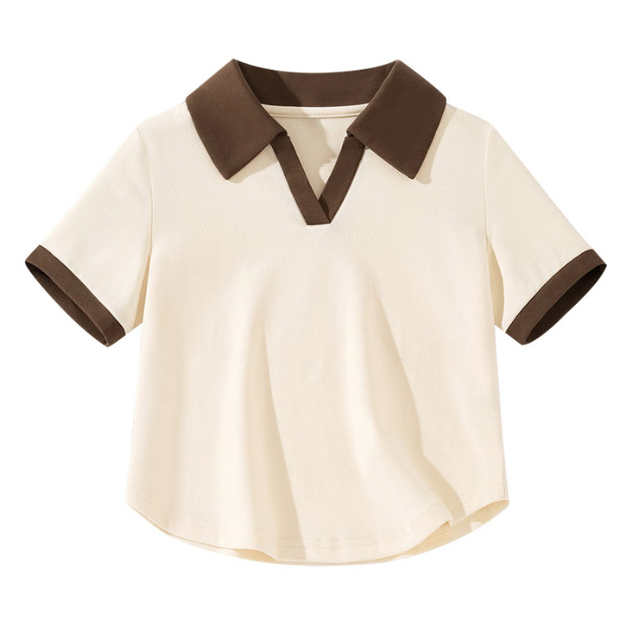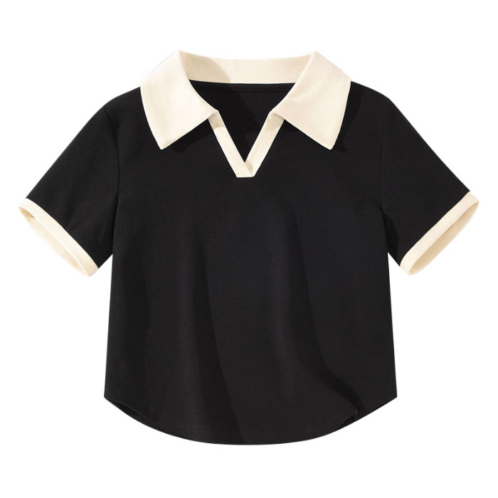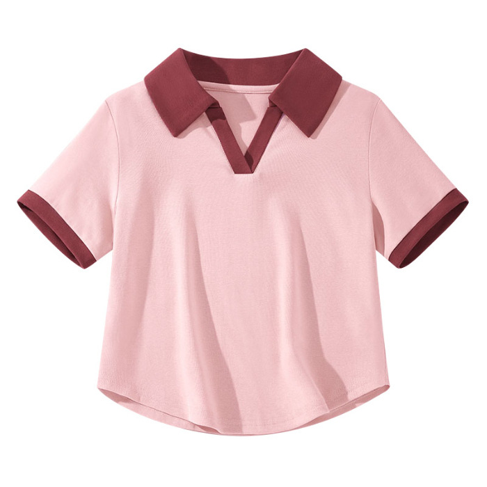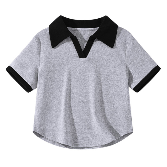 A41#(220克40支1X1棉螺纹拉架)后包领正肩短款Polo领辣妹短袖T