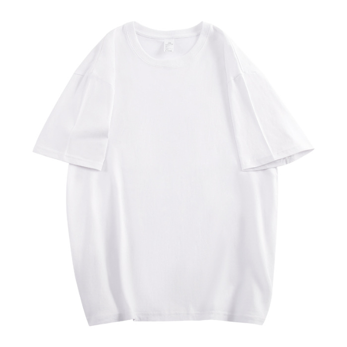 A03#(260克精梳紧密赛络纺100%棉)有缝后包领落肩纯棉光板短袖T