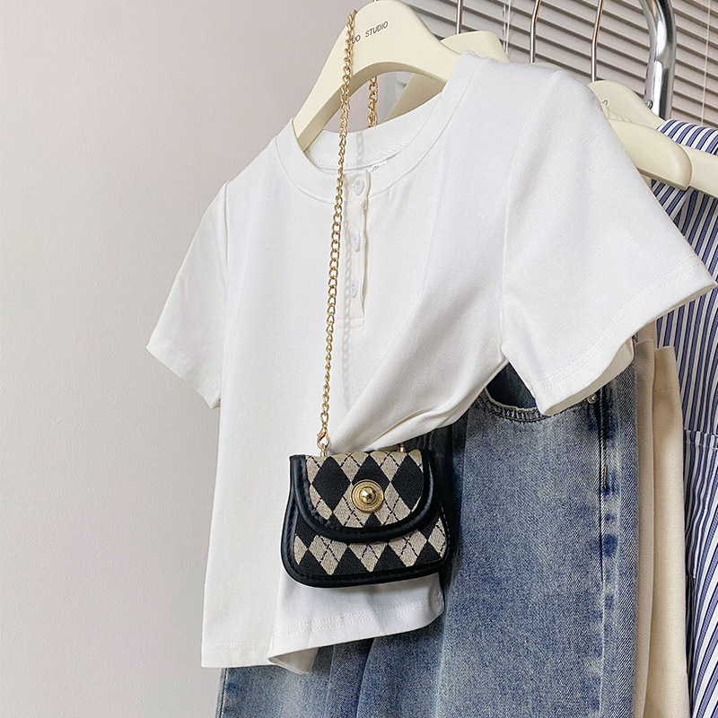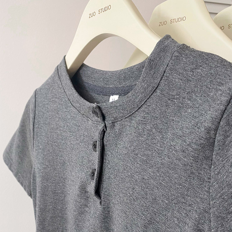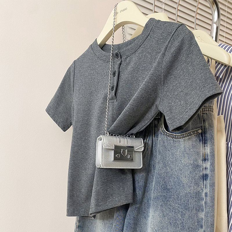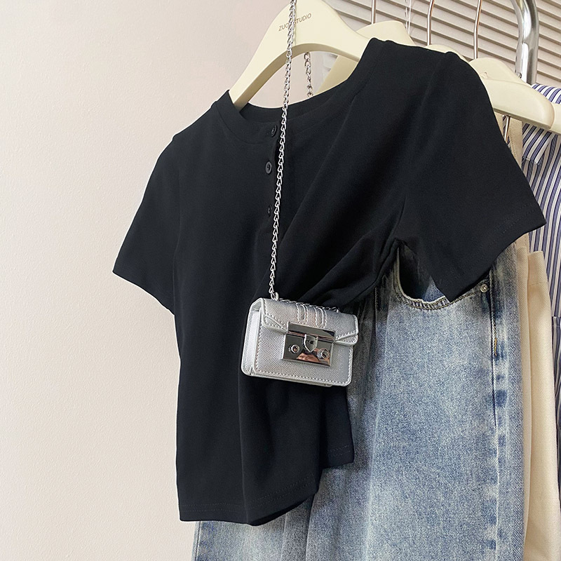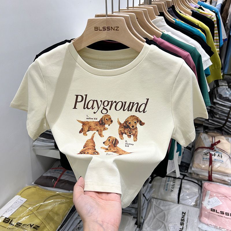 纯棉正肩短袖t恤女夏季新款修身显瘦半袖体恤小个子辣妹上衣