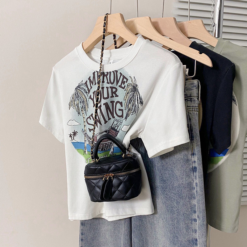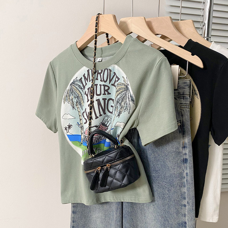 纯棉时尚洋气减龄上衣夏季女新款显瘦休闲百搭设计感短袖t恤