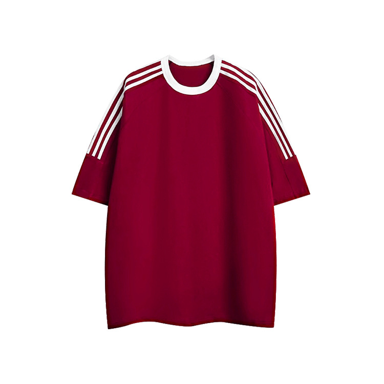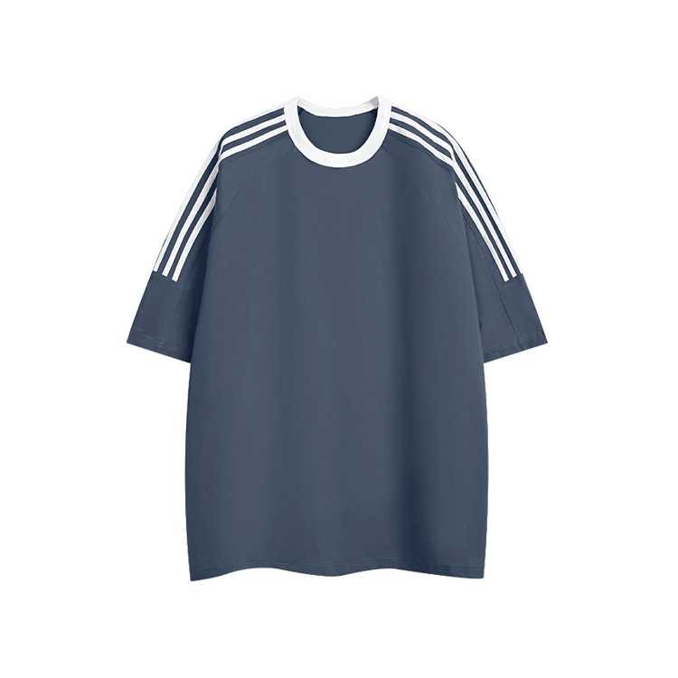 A10#(230克精梳纯棉平纹)潮牌复古杆条运动休闲净版短袖T恤跨境