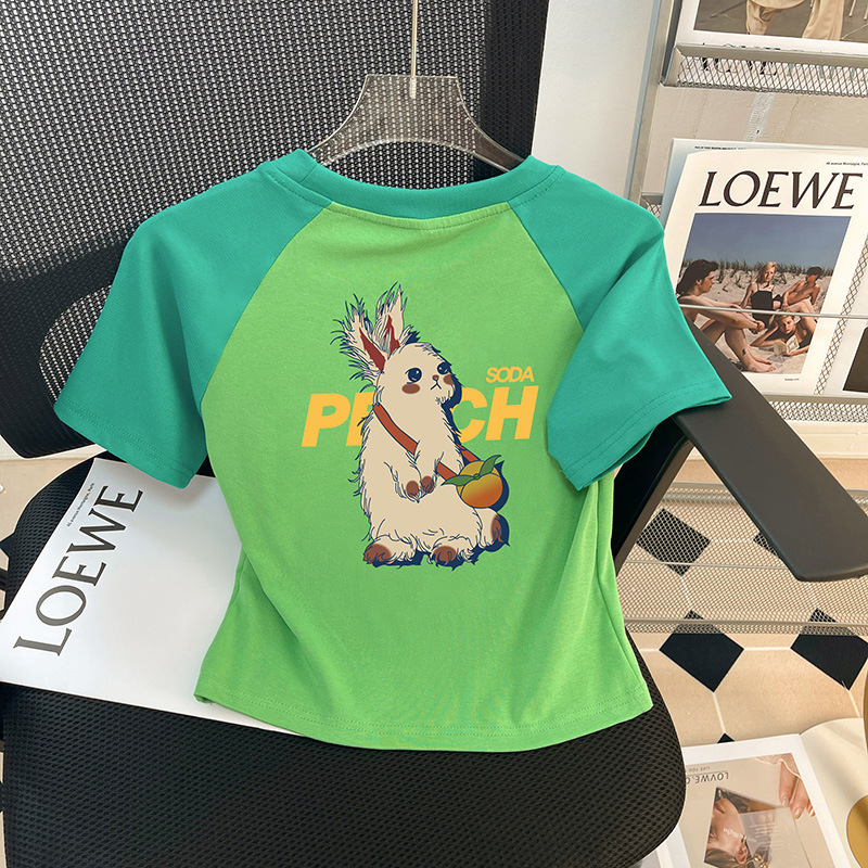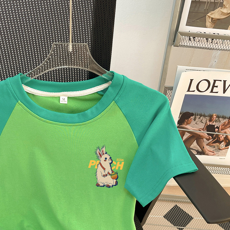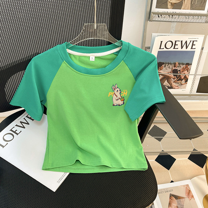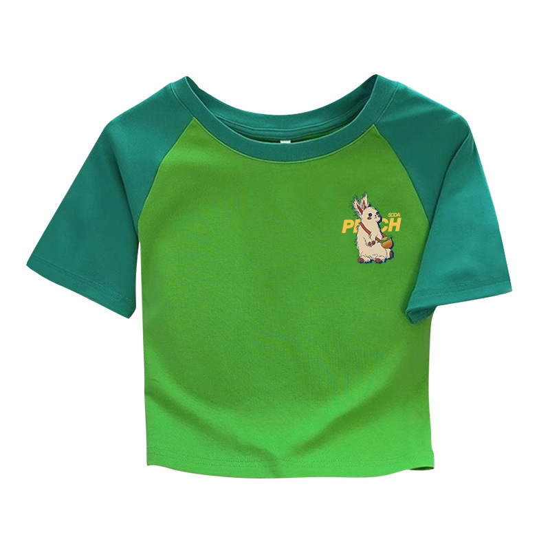 多巴胺绿色短袖t恤女夏季高腰短款紧身显瘦纯棉正肩美式辣妹上衣