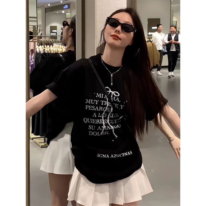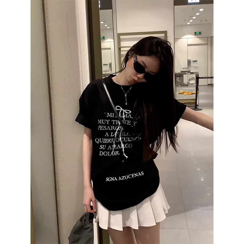 美式纯棉t恤女短袖夏季新款宽松韩版oversize中长款体桖上衣