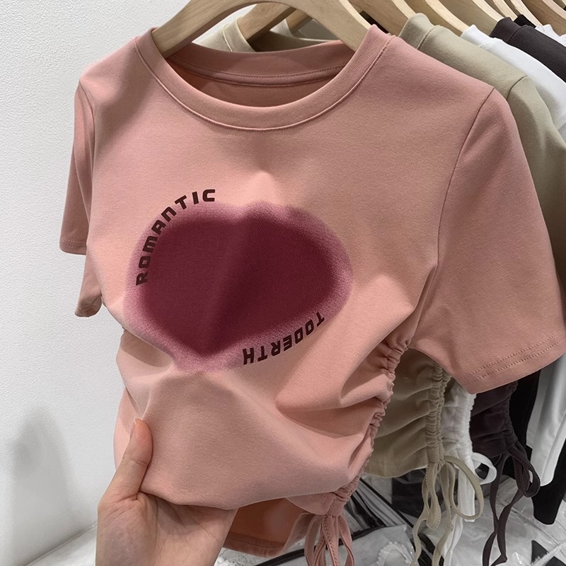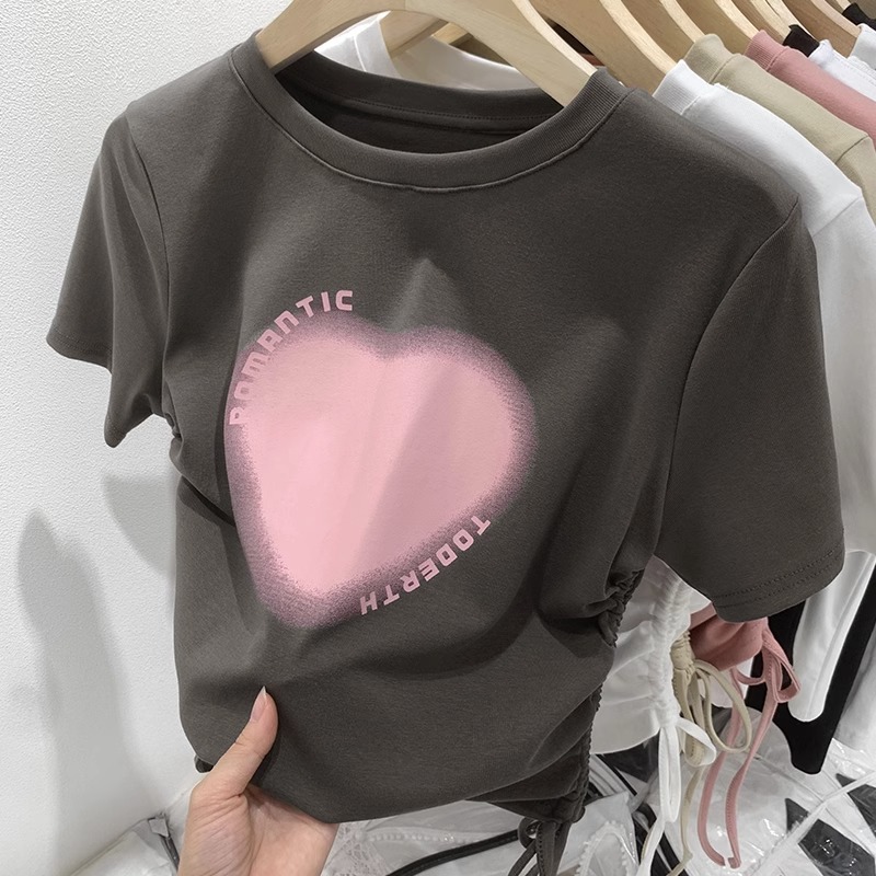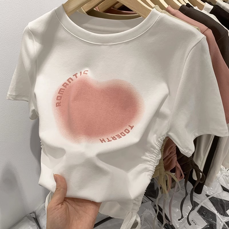 纯棉正肩短袖T恤女夏季新款修身体桖收腰显瘦小个子短款体桖上衣