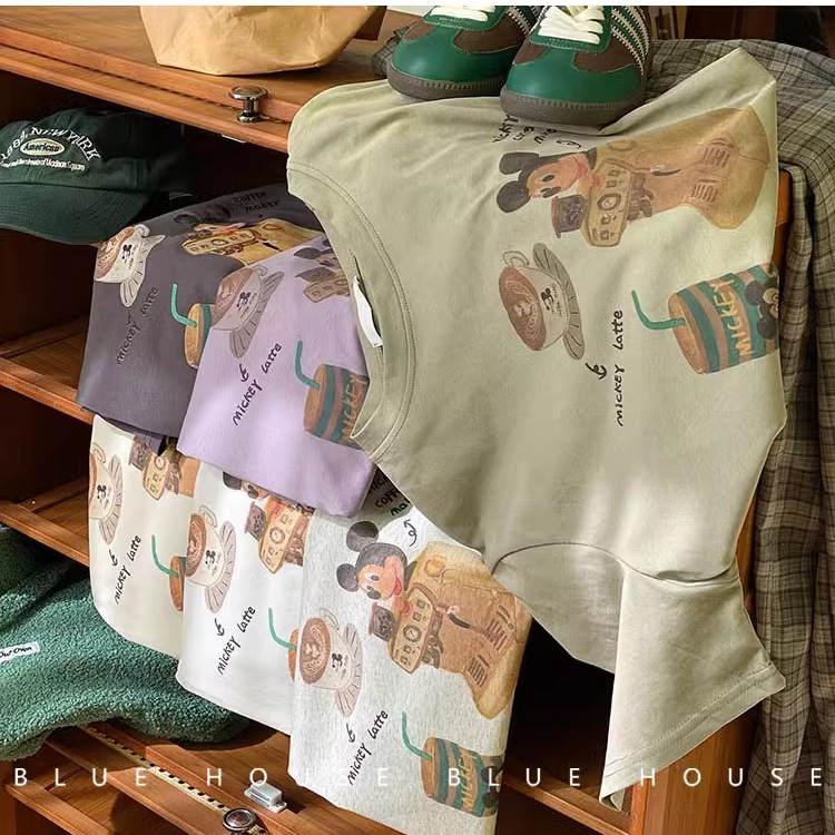春夏韩国chic咖啡米奇印花短袖T恤女ins纯棉宽松休闲洋气半袖上衣