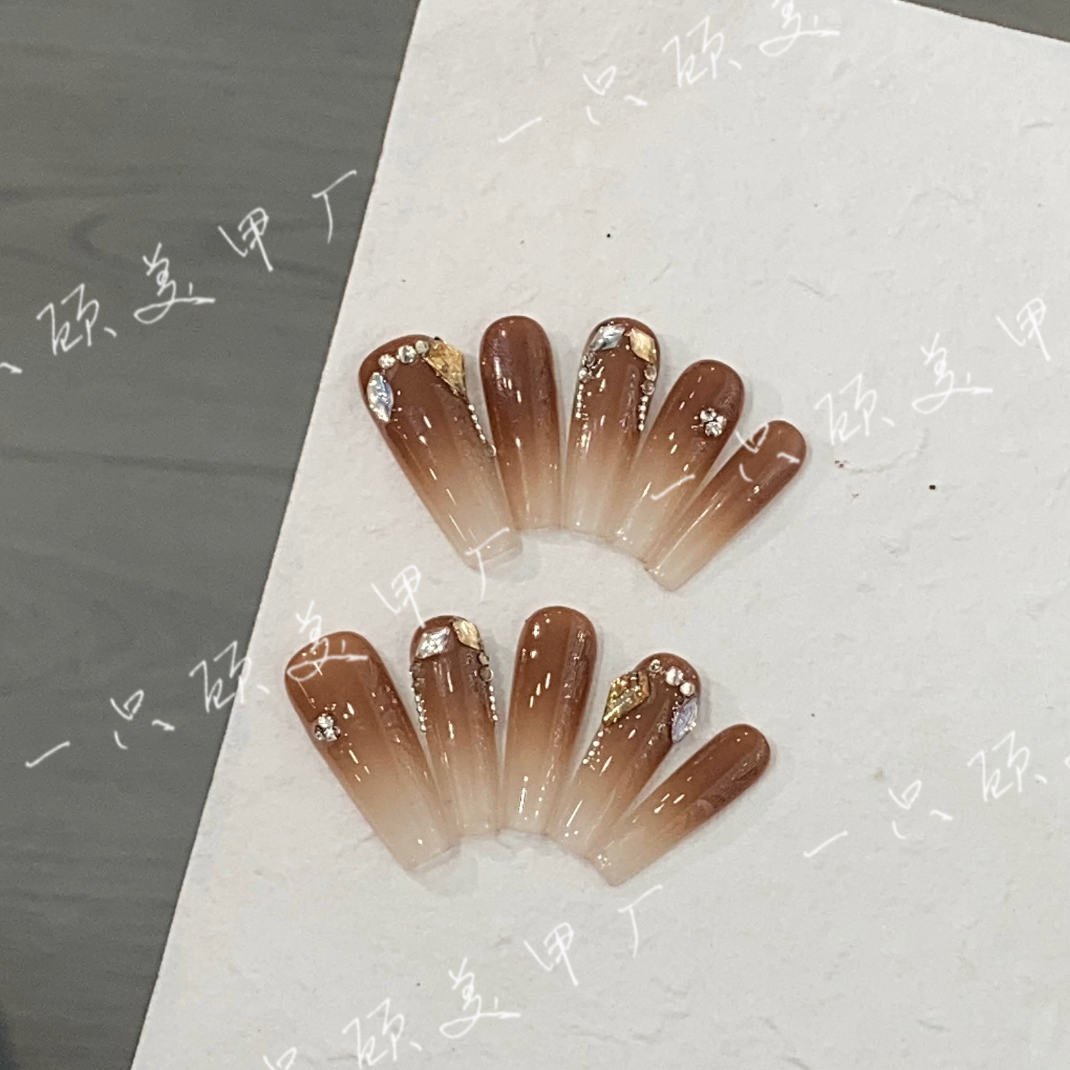 一只顾美甲厂 【Y】【原创实拍】秋冬美拉德色系香槟指根钻燕麦