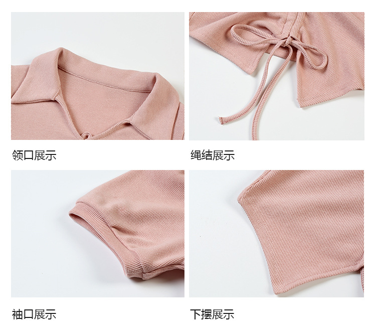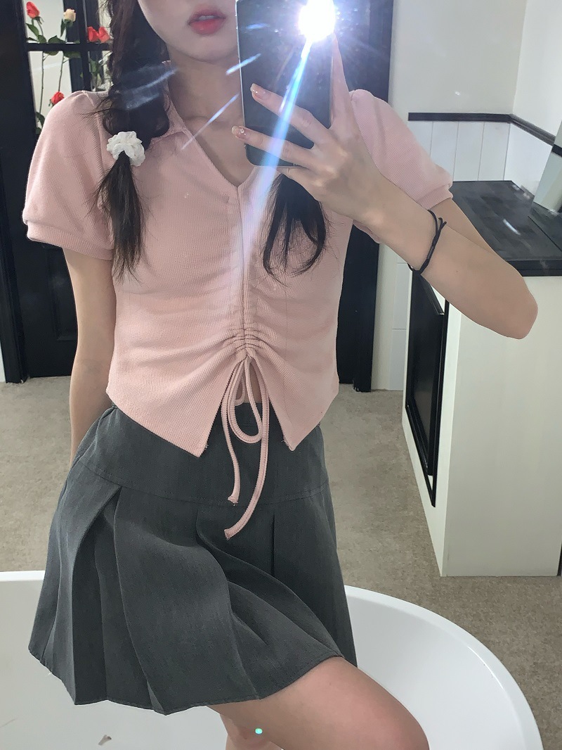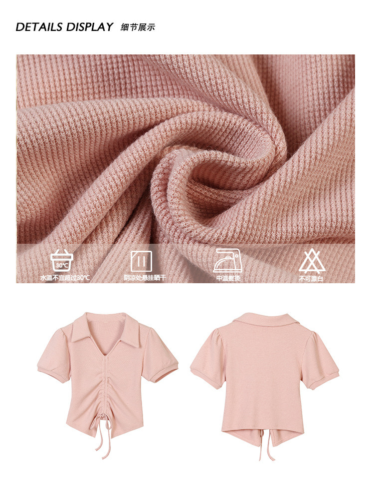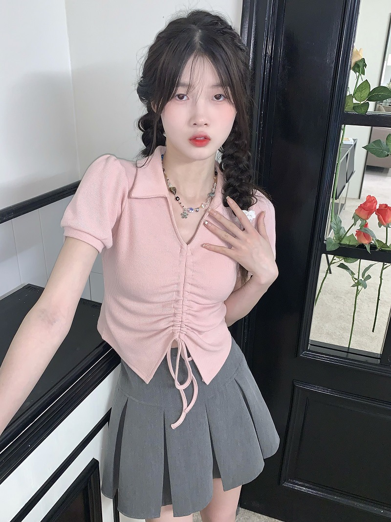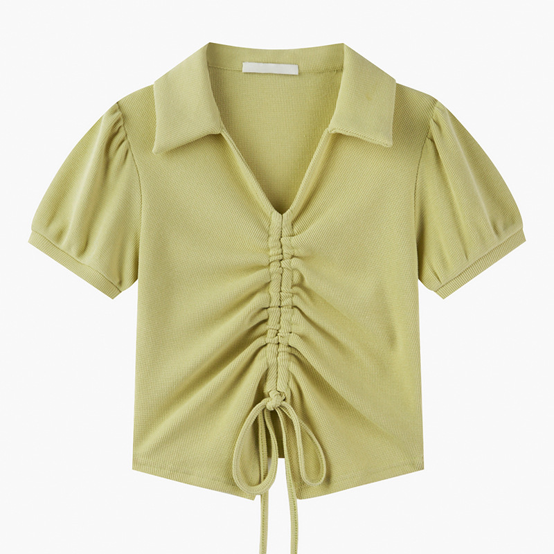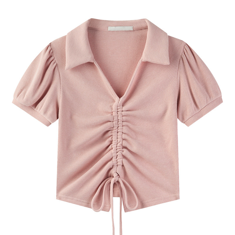 纯欲风甜辣显瘦短款上衣夏季设计感不规则抽绳V领泡泡短袖t恤女装