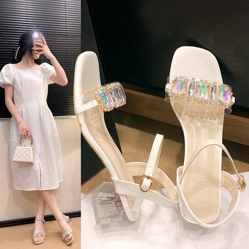 网红法式水钻凉鞋女夏新款粗跟高跟鞋爆款时尚气质仙女风凉拖
