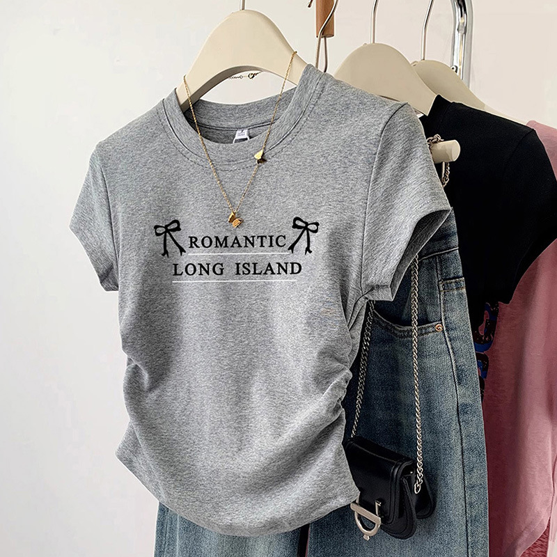 纯棉不规则灰色正肩短袖t恤女夏新款设计感短款修身显瘦上衣