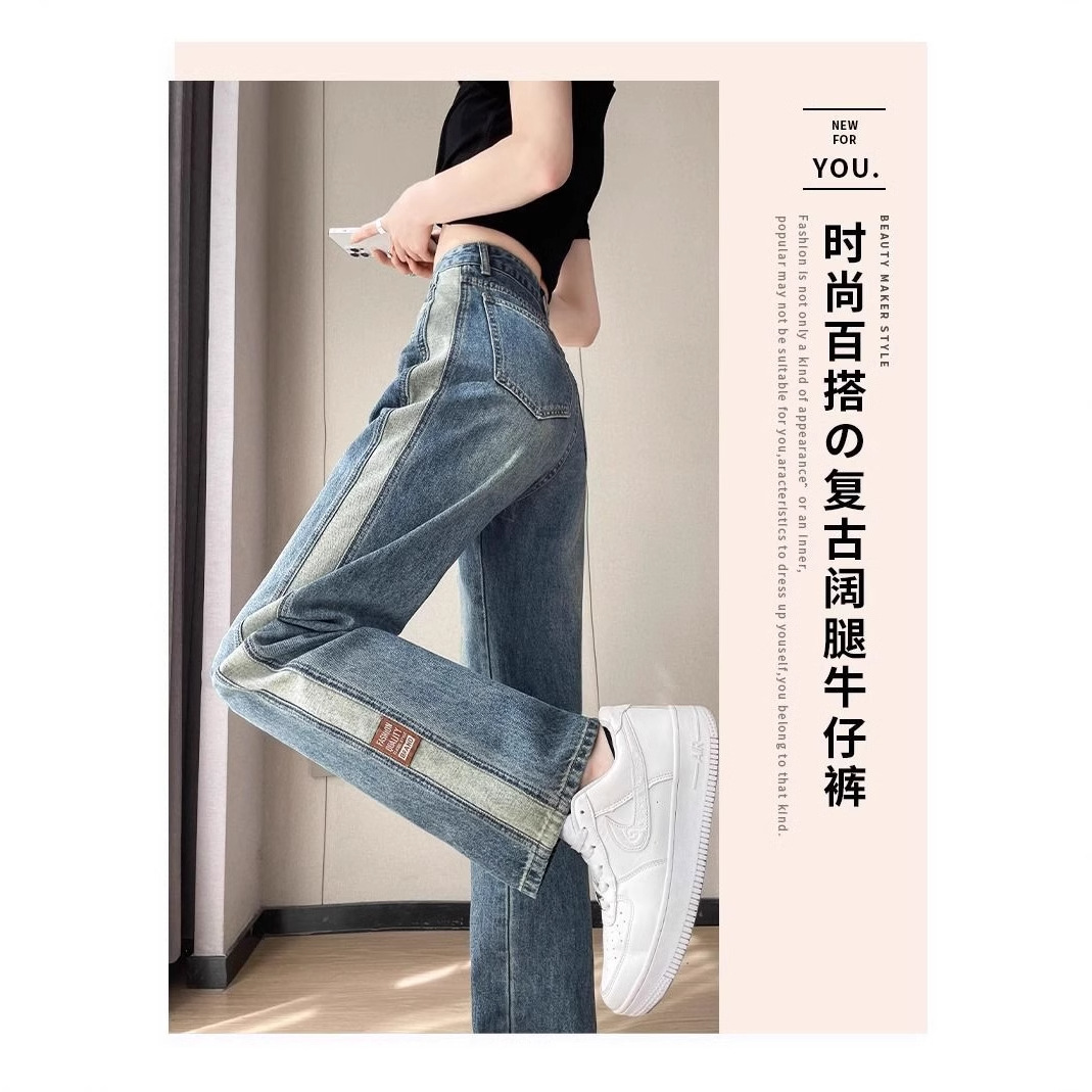 复古阔腿牛仔裤女高腰垂感春秋冬季2025年新款小个子直筒拖地裤