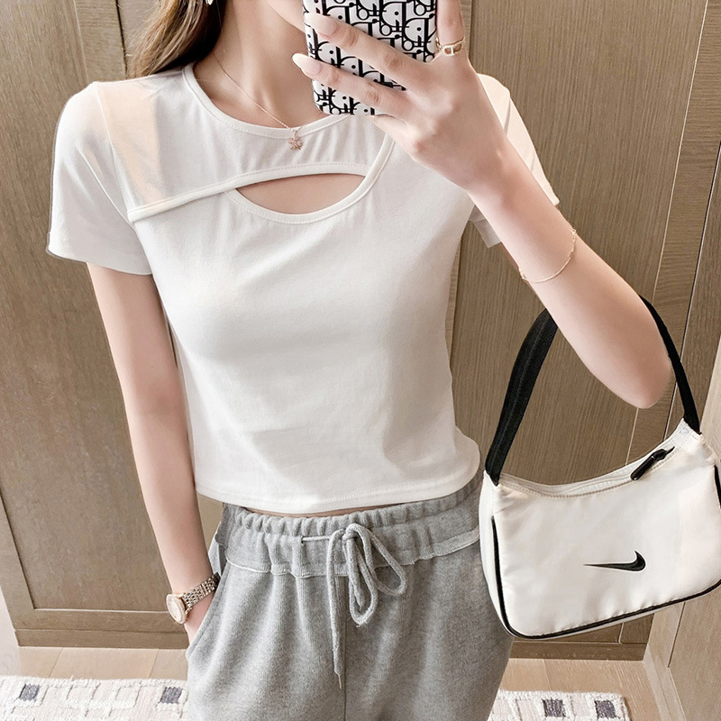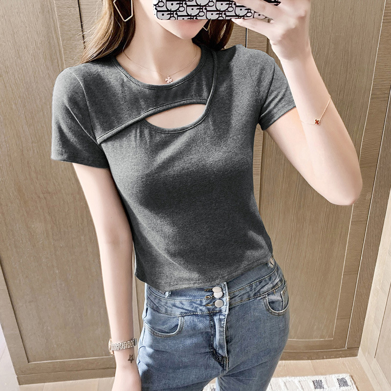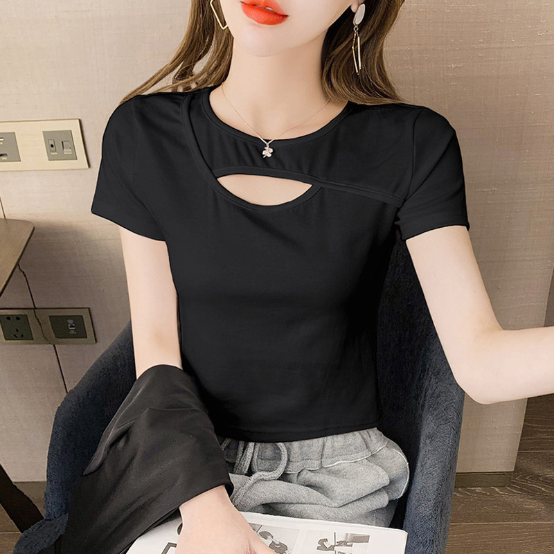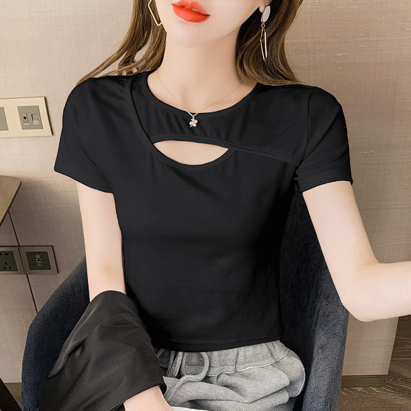 纯棉t恤女短袖年新款半袖夏上衣短款小众设计感轻熟百搭正肩