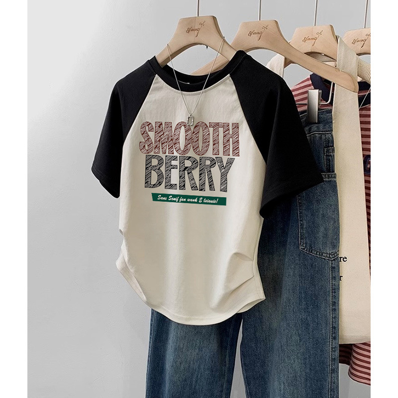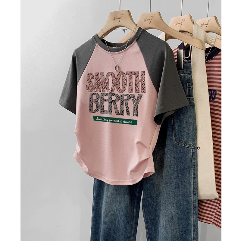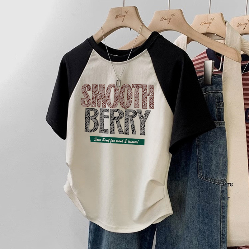 美式复古插肩袖T恤女收腰显瘦ins潮夏季宽松韩版短袖体桖短款上衣