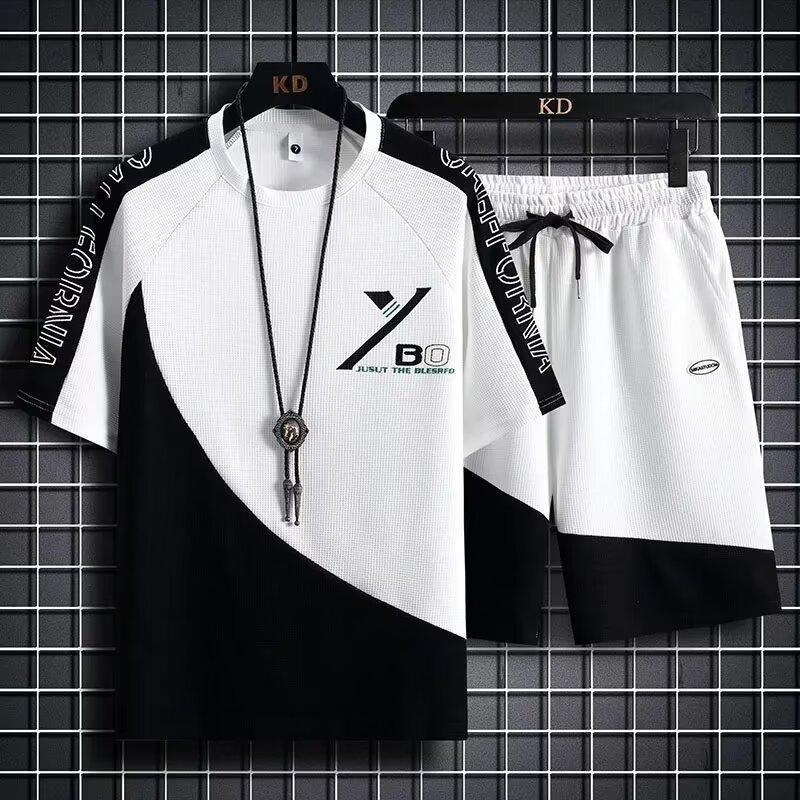 华夫格休闲套装男夏季新款潮牌港风宽松高级感短袖短裤运动两件套
