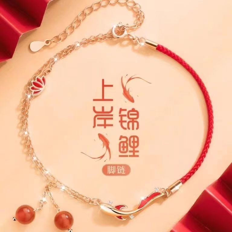 上岸锦鲤红绳脚链新款潮s925银性感高级感本命年脚绳