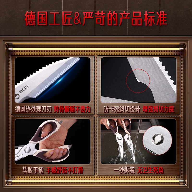 SSGP三四钢 厨房剪刀多功能烤肉剪子 食物剪家用蔬菜不锈钢鸡骨剪