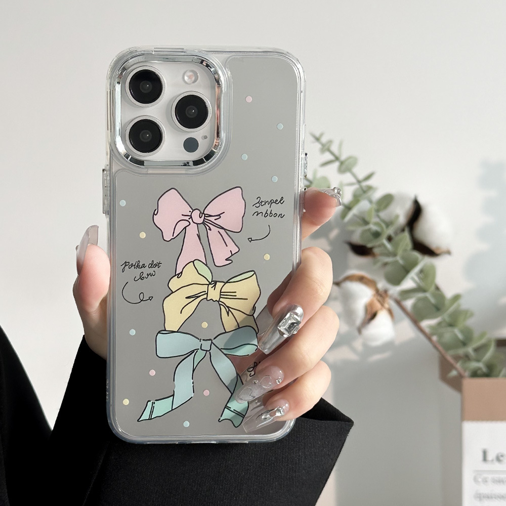 手绘蝴蝶结15promax手机壳14plus苹果13/12/11镜面XR保护套XS防摔