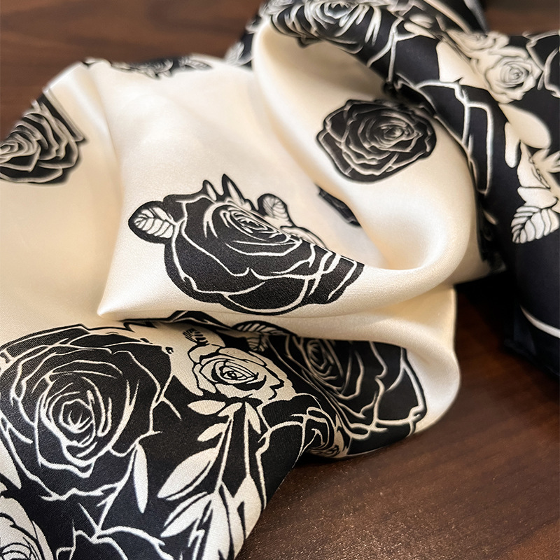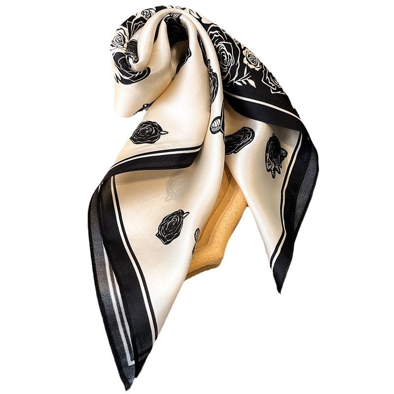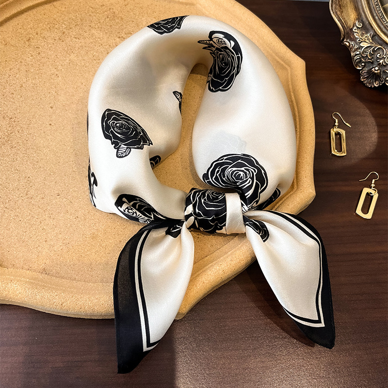 春季热款简约设计感真丝丝巾女百搭气质玫瑰桑蚕丝丝巾时尚小方巾