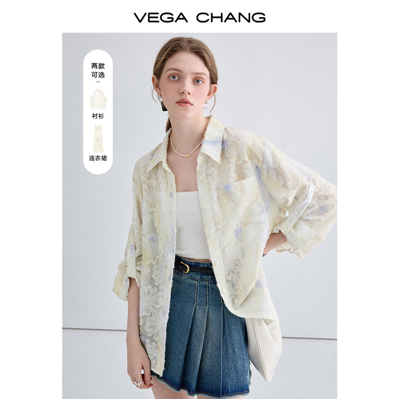VEGA CHANG提花衬衫女2025年夏新款设计感小众宽松显瘦上衣ins潮