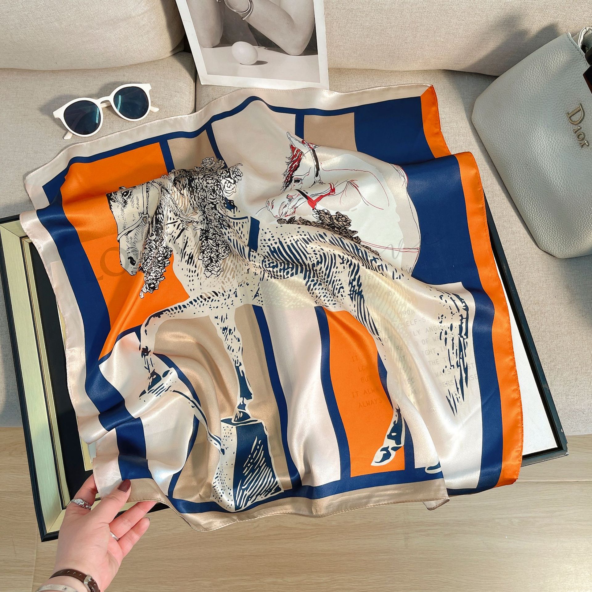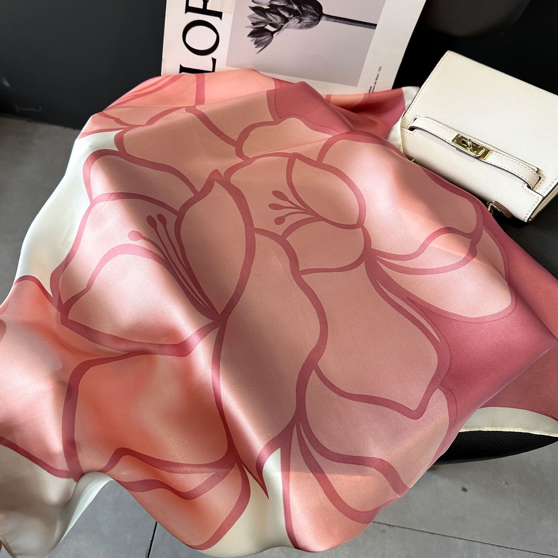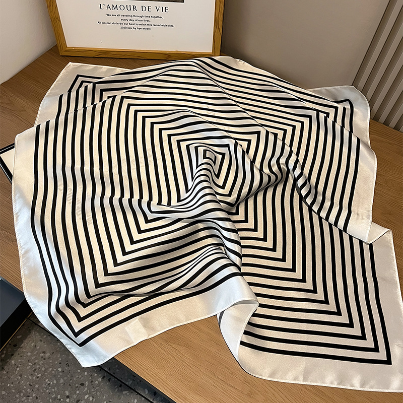 时尚几何条纹真丝丝巾女春夏长条桑蚕丝方巾女礼品高档丝巾