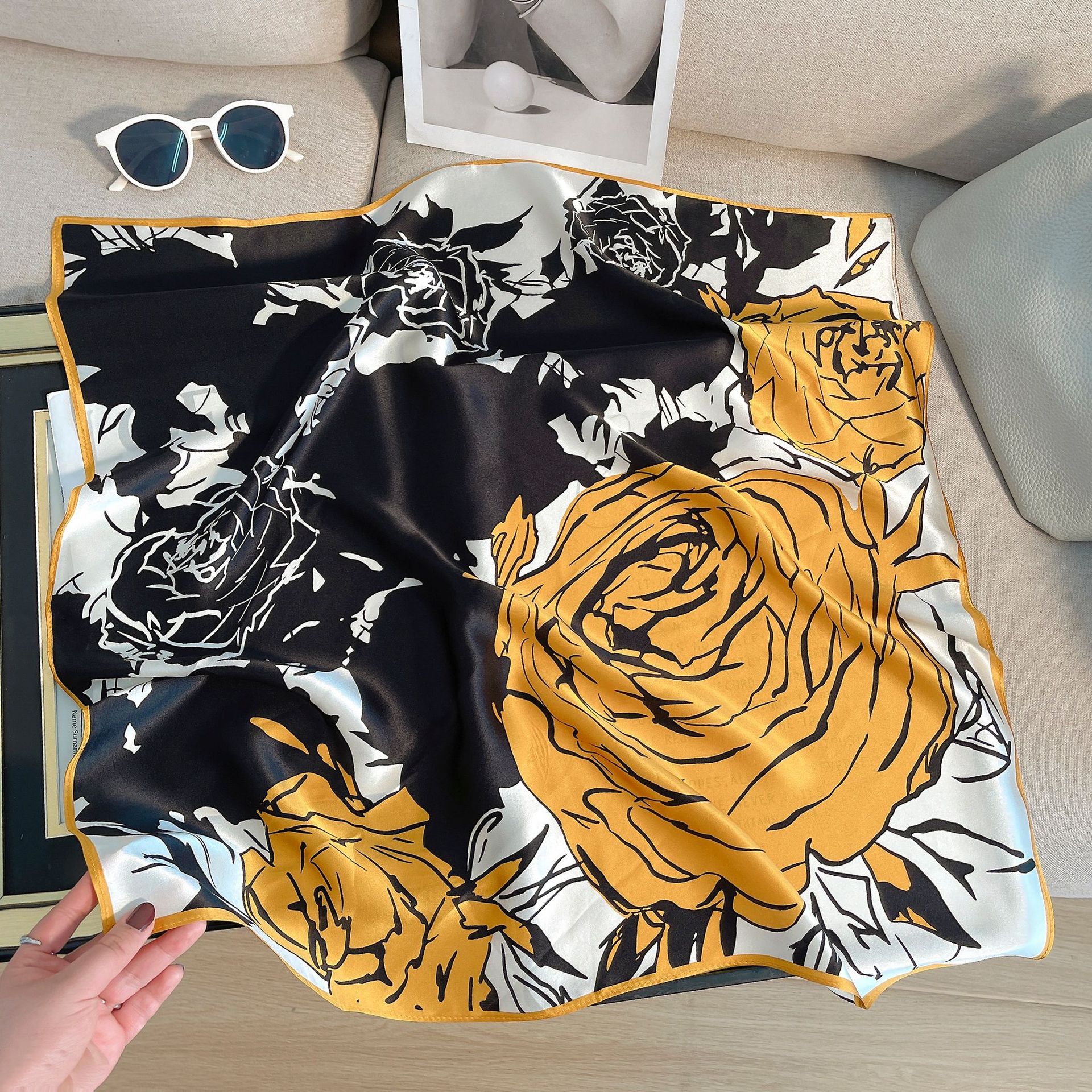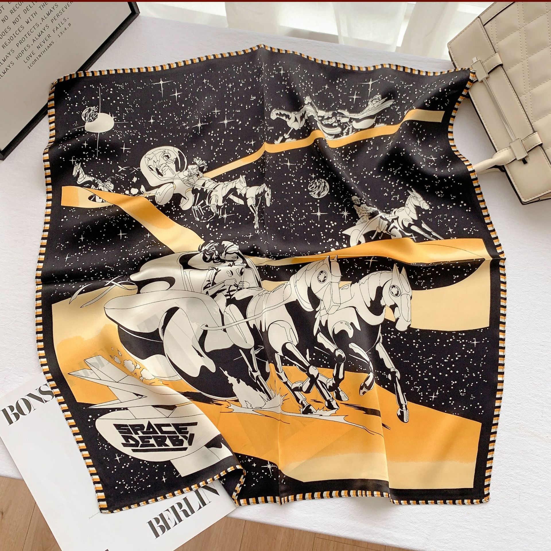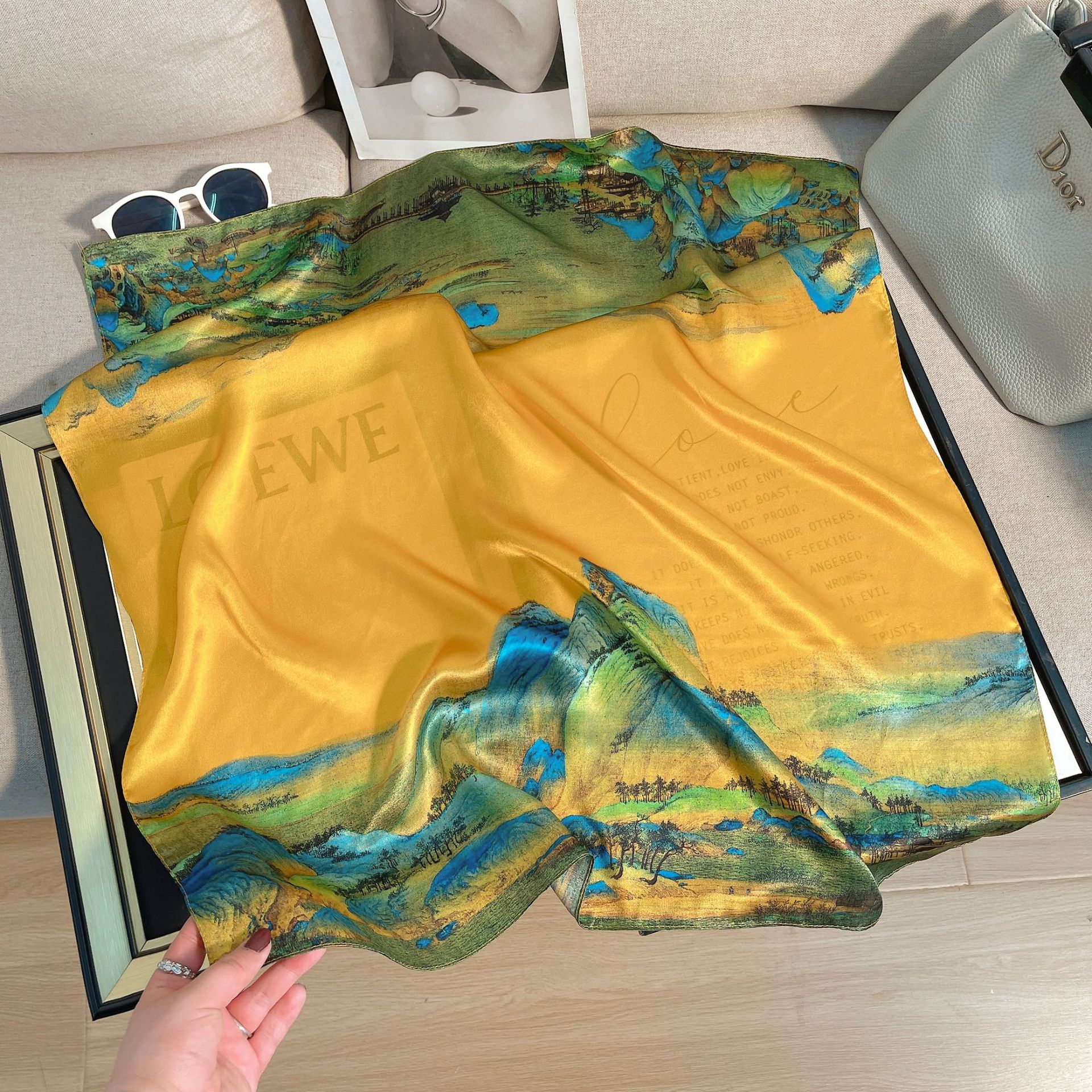 时尚几何条纹真丝丝巾女春夏长条桑蚕丝方巾女礼品高档丝巾