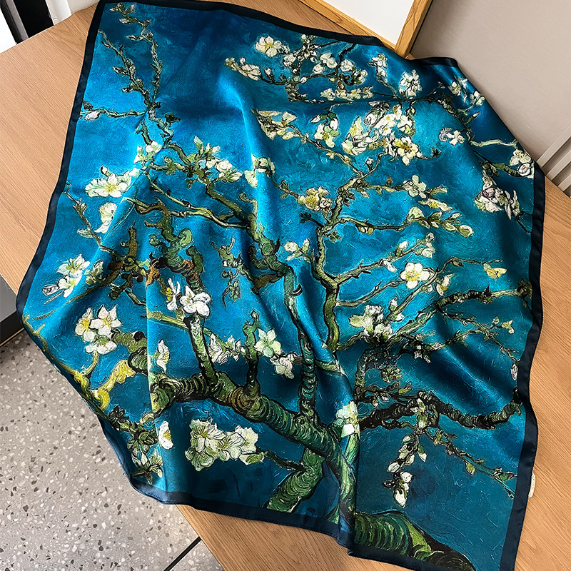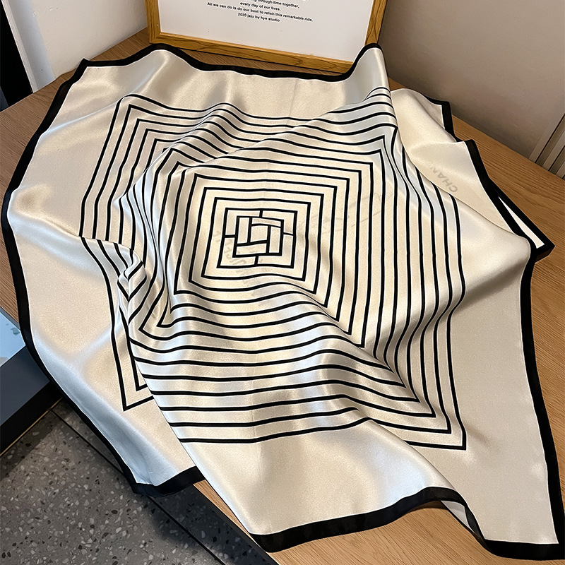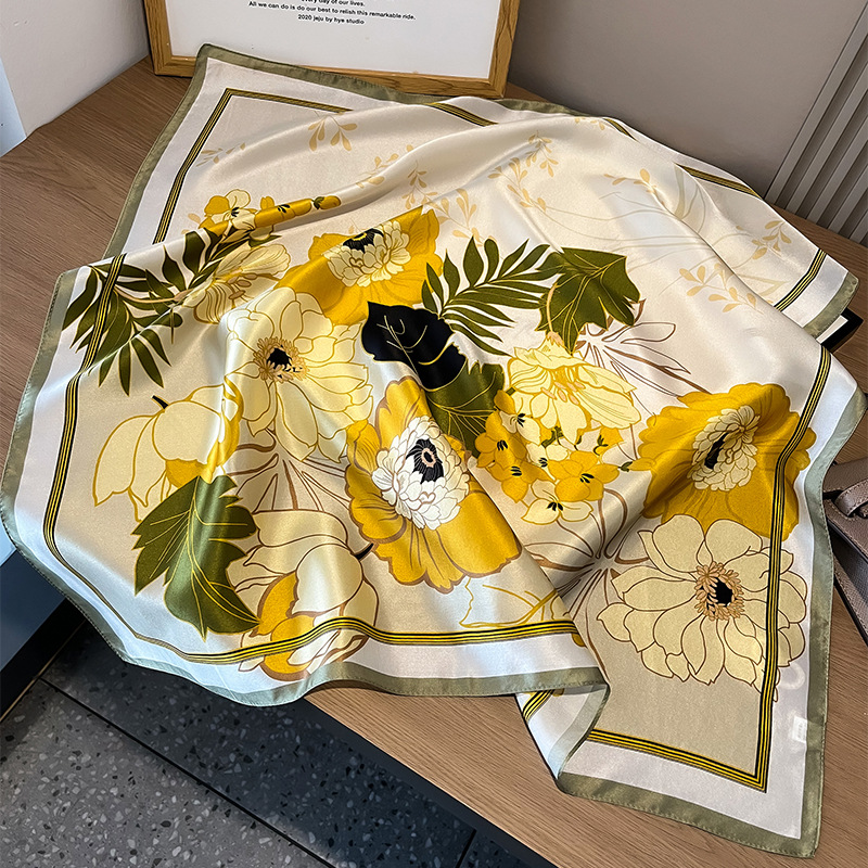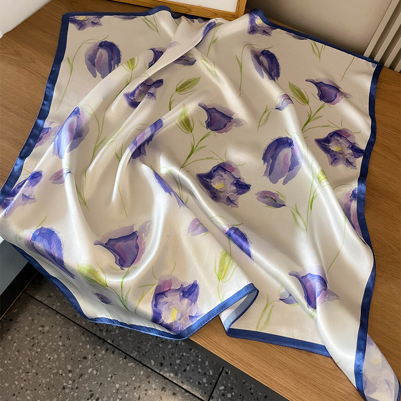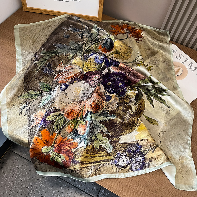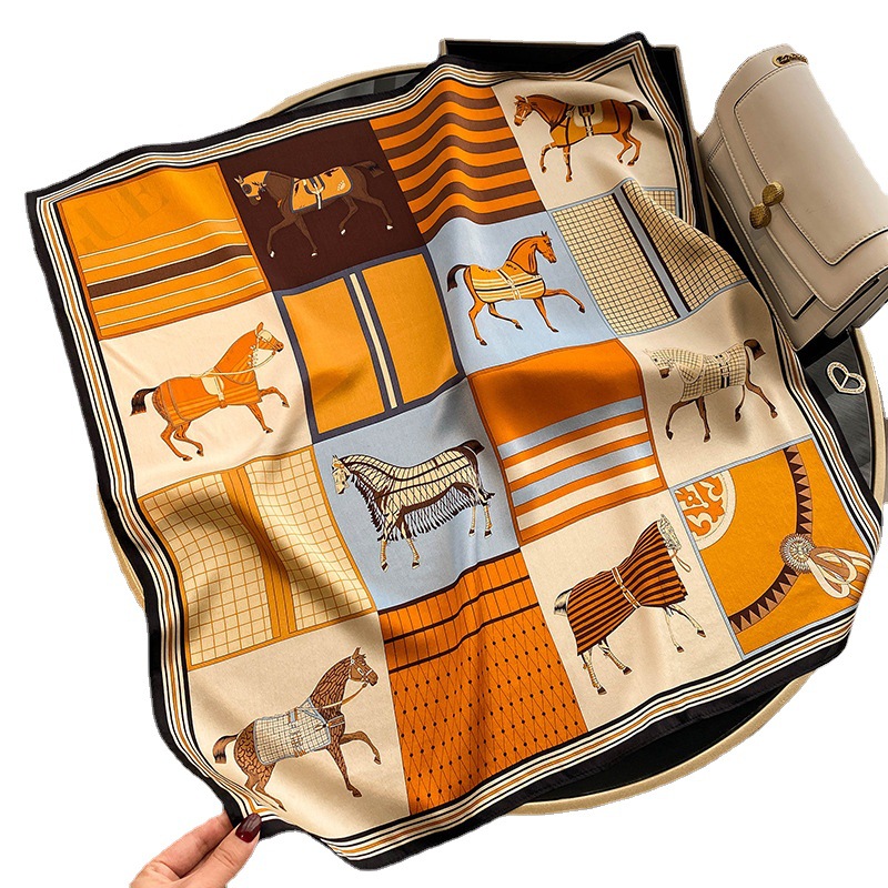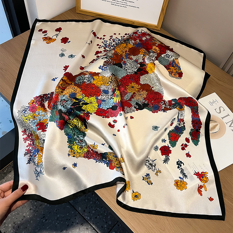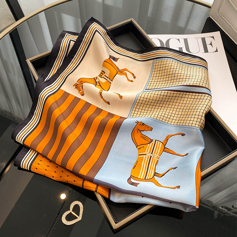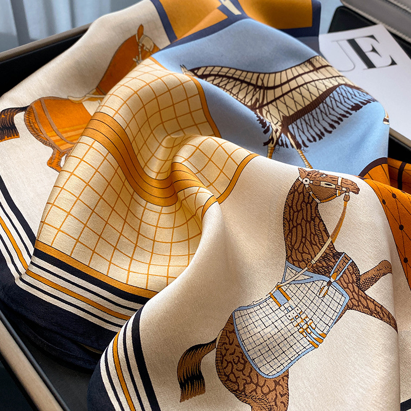 春季新款骏马拼接真丝丝巾女欧美时尚复古70*70cm桑蚕丝方巾